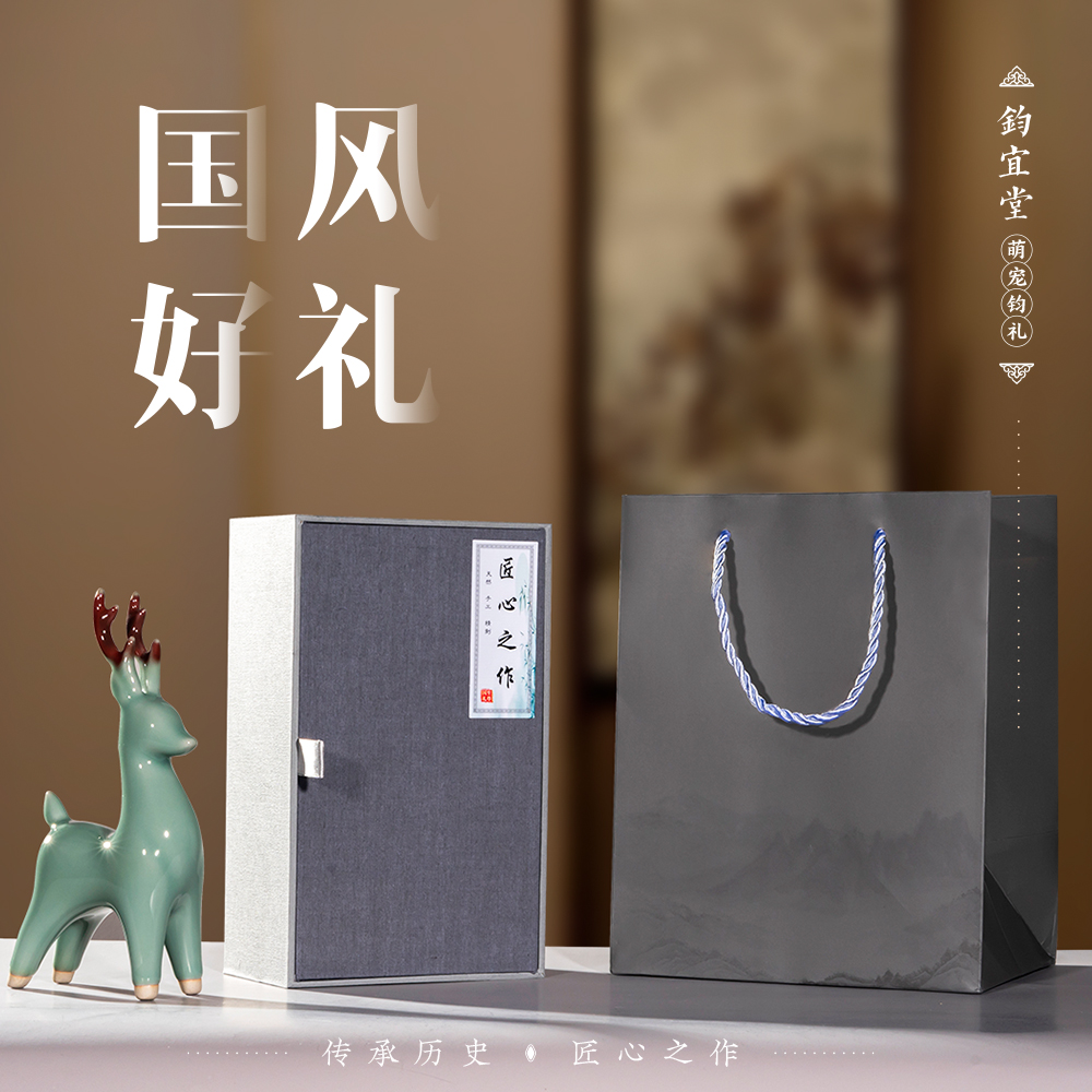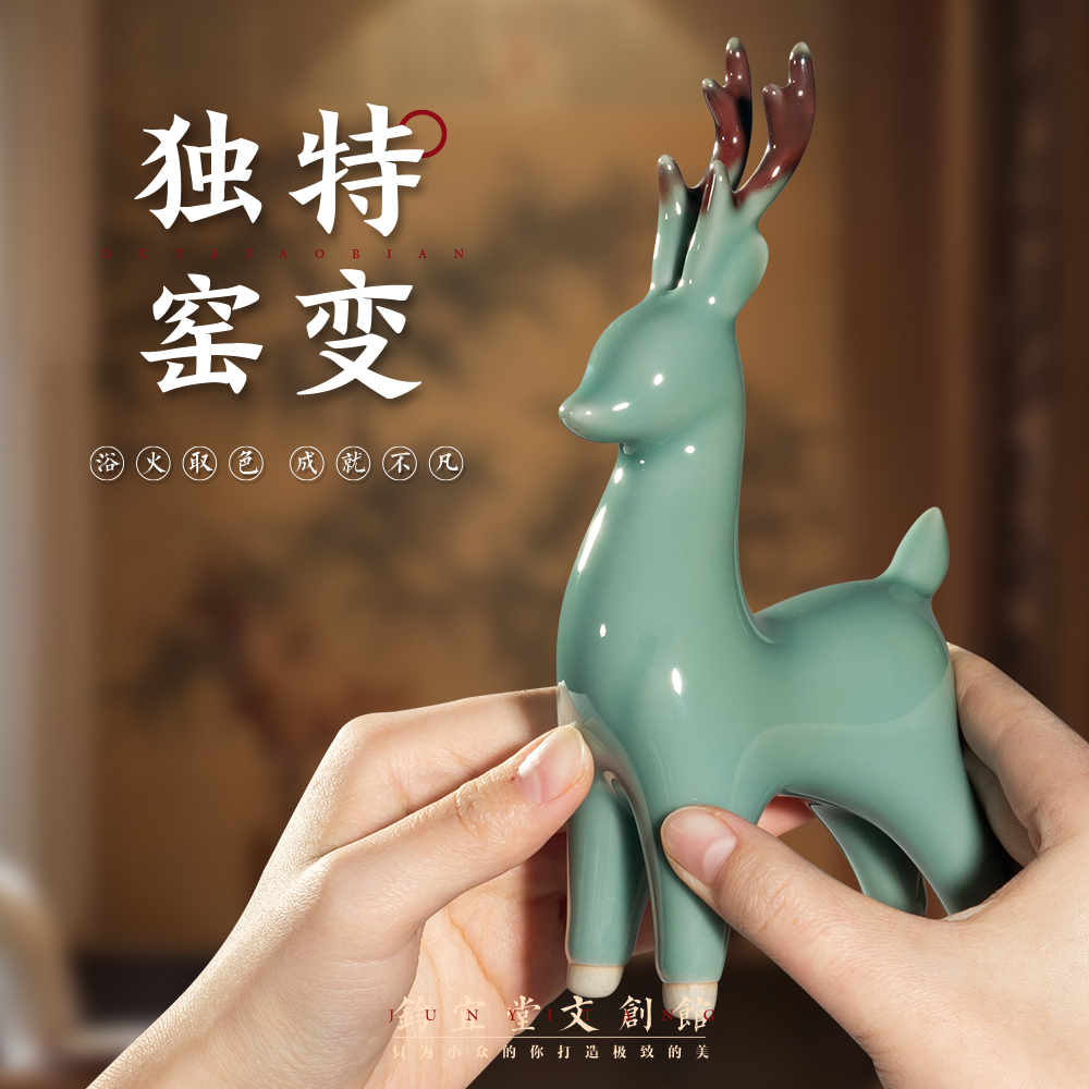 钧瓷仙鹿摆件陶瓷窑变桌面装饰客厅玄关摆设招财纳福特色乔迁礼物