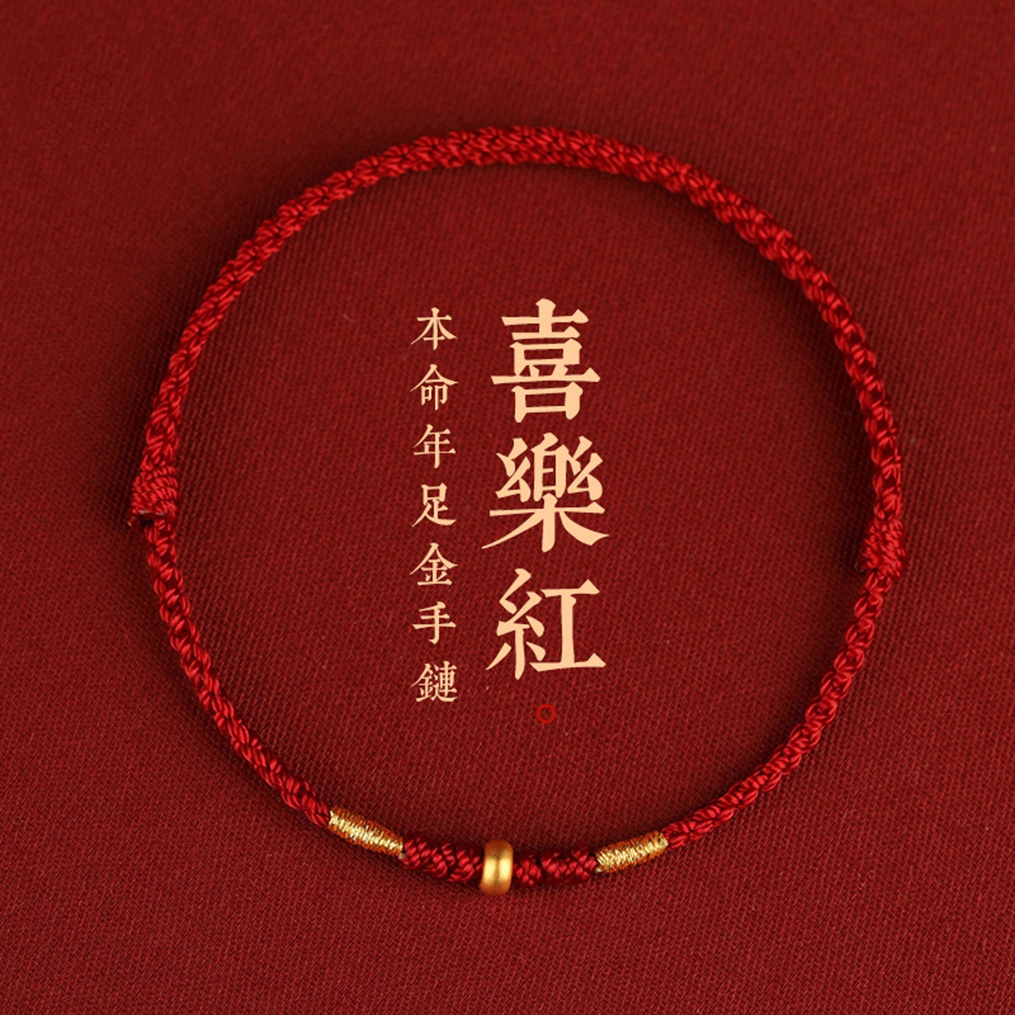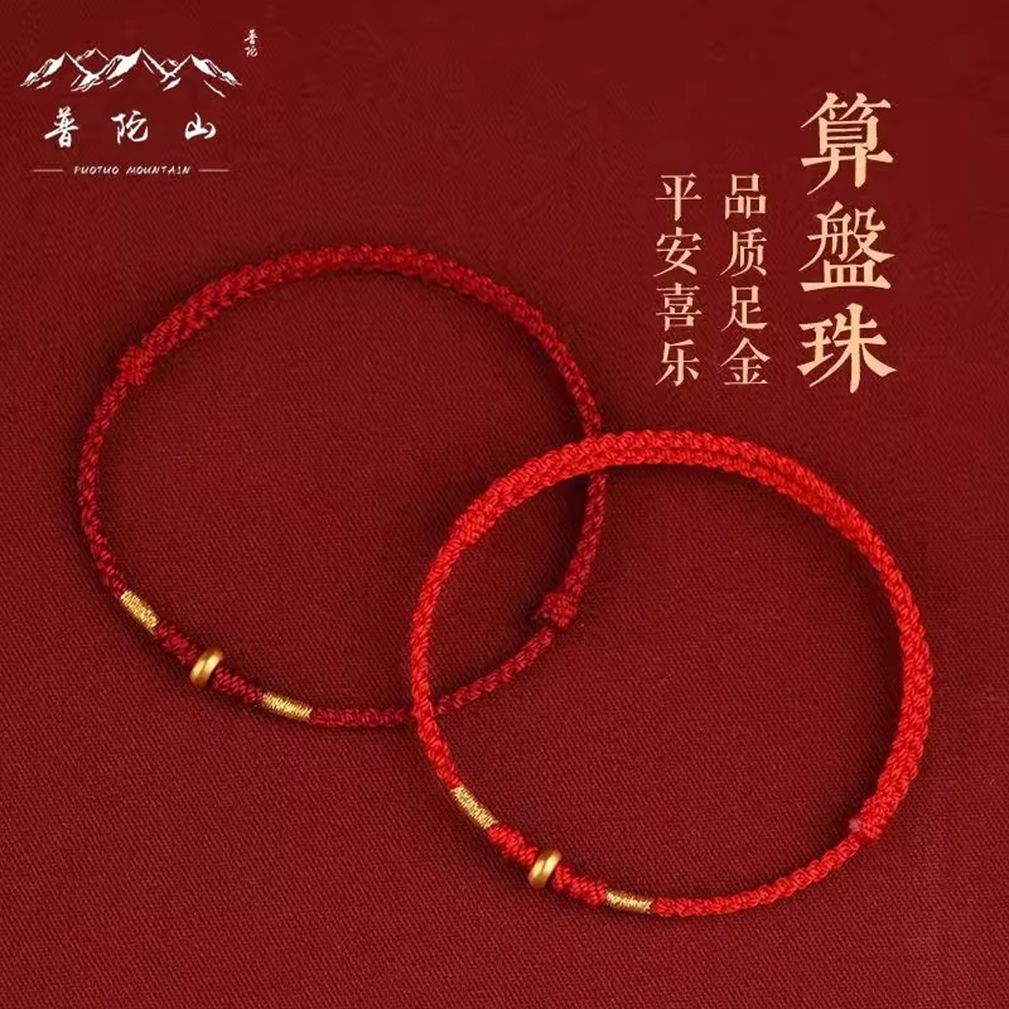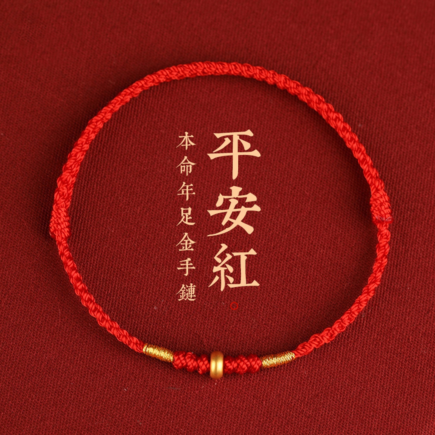 普陀山龙年本命年小红绳手链黄金新款手绳脚链编织绳护身符红手绳