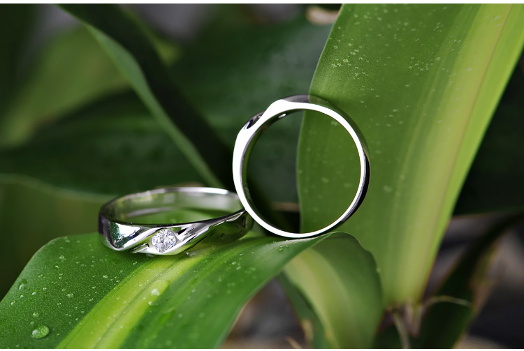 925纯银情侣对戒镶嵌锆石韩版指环男女镀白金求婚松女友礼物饰品