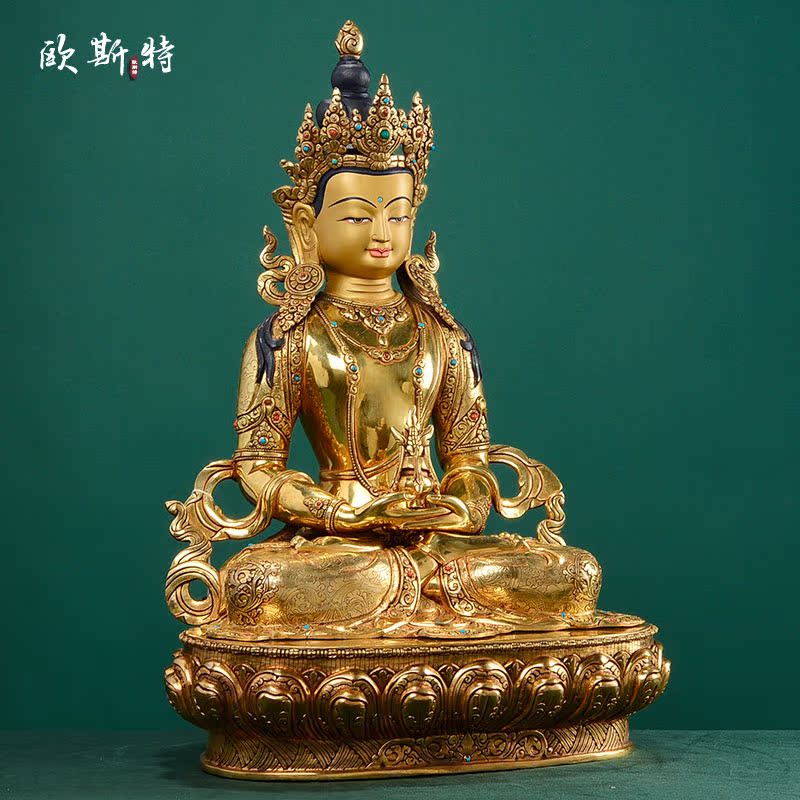 欧斯特常寿佛摆件玄关装饰家居客厅用品铜像尼泊尔手工铜鎏金15寸