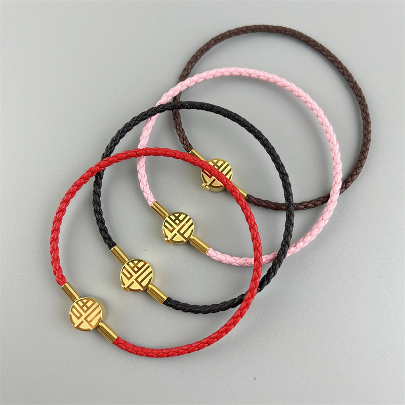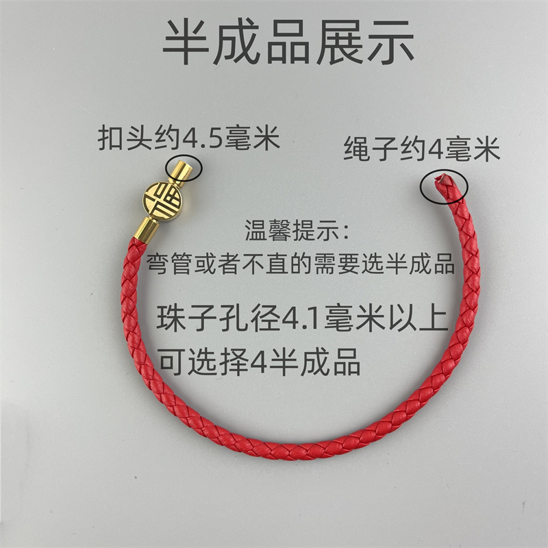 2.5 3 4 5福气到圆饼福字扣皮绳手绳手链男女红色串配珠转运珠