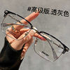超轻钛架黑色大脸半框眼镜男款近视可配度数斯文方框专业眼睛框架