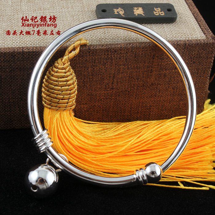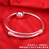 银手镯女999足银纯银饰品 实心推拉银镯子挂球铃铛光面时尚手镯