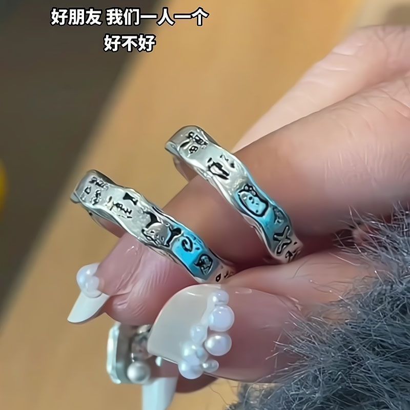 极简涂鸦波浪边戒指ins风小众设计百搭精致时尚帕恰情侣款