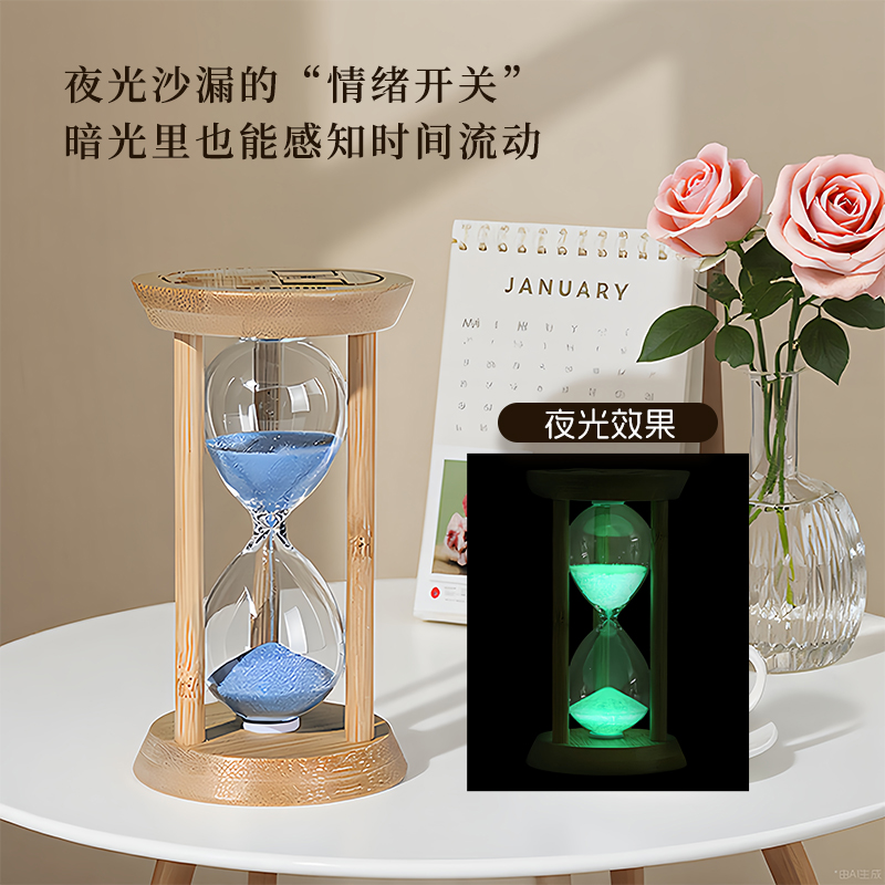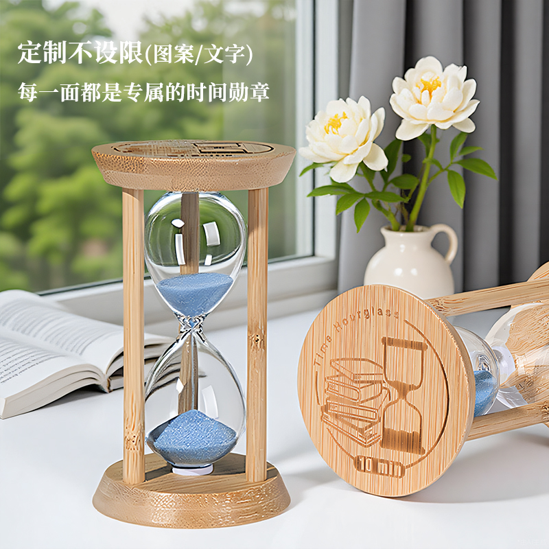 创意竹木圆形夜光沙漏计时器防摔学习专用摆件礼物1/10/30分钟...