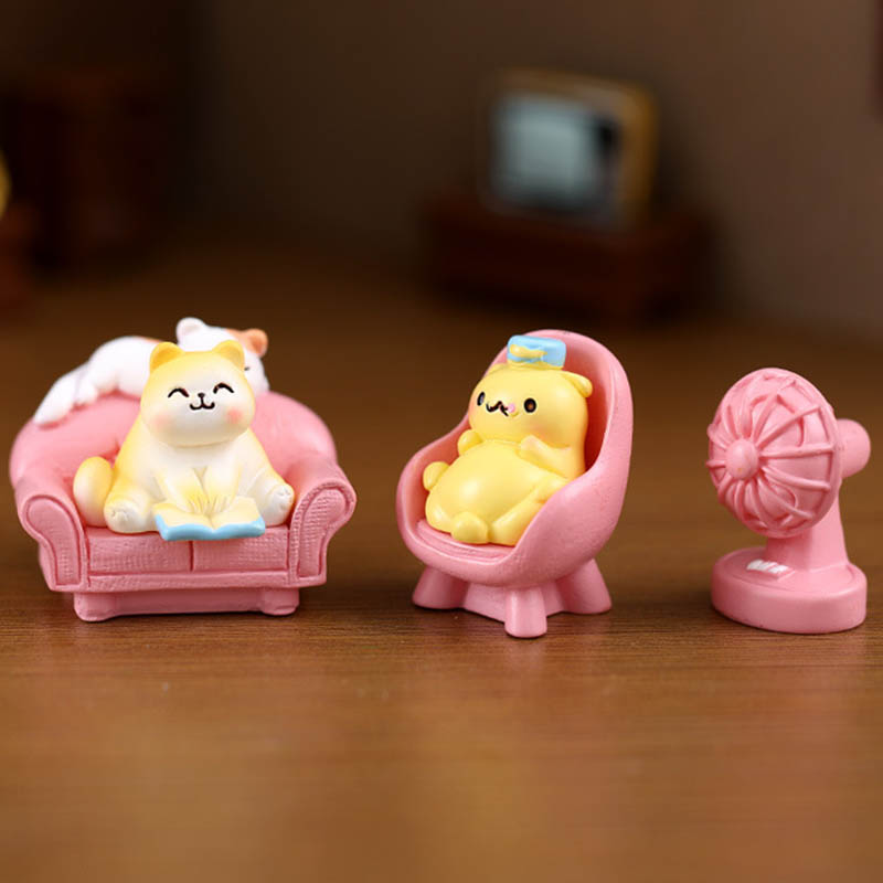 可爱小猫摆件创意桌面多肉盆栽装饰树脂仿真家具家电凳子风扇台灯