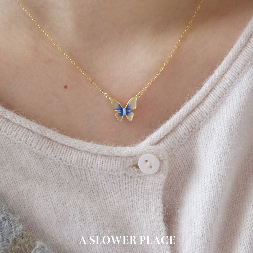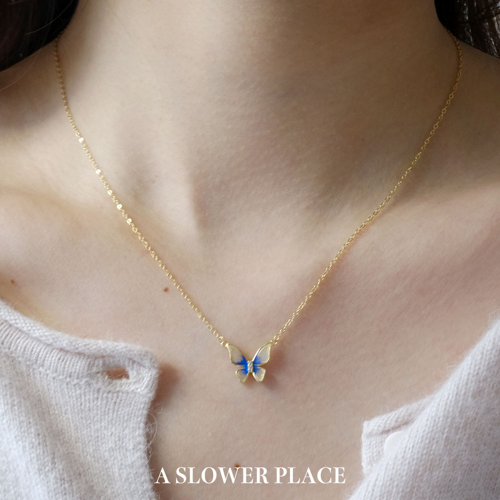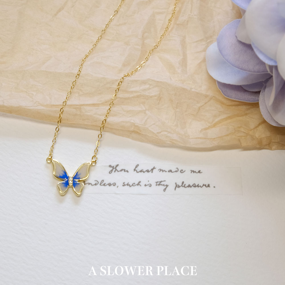 庄周梦蝶|法式复古珐琅蓝色渐变优雅项链 优美温婉小众锁骨链