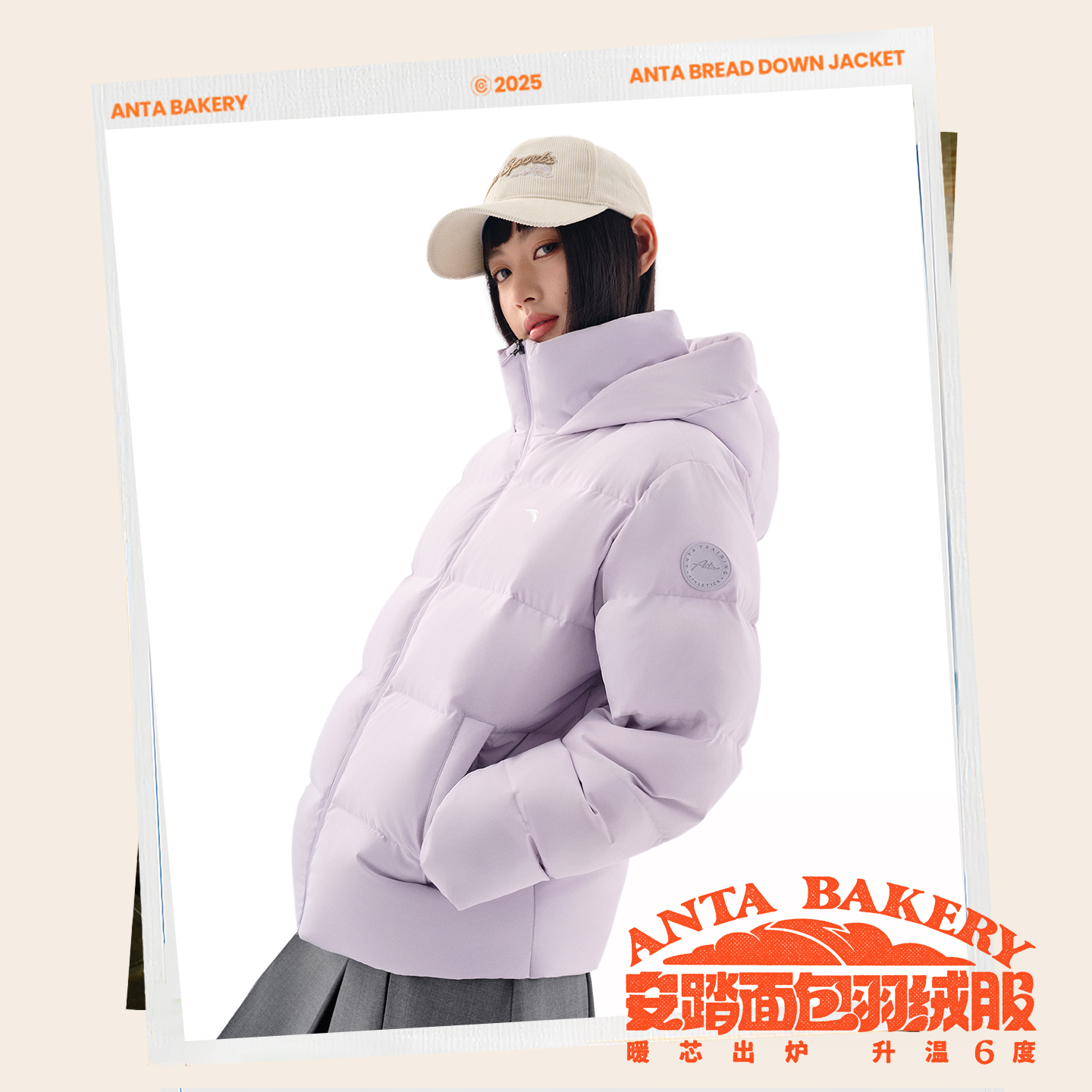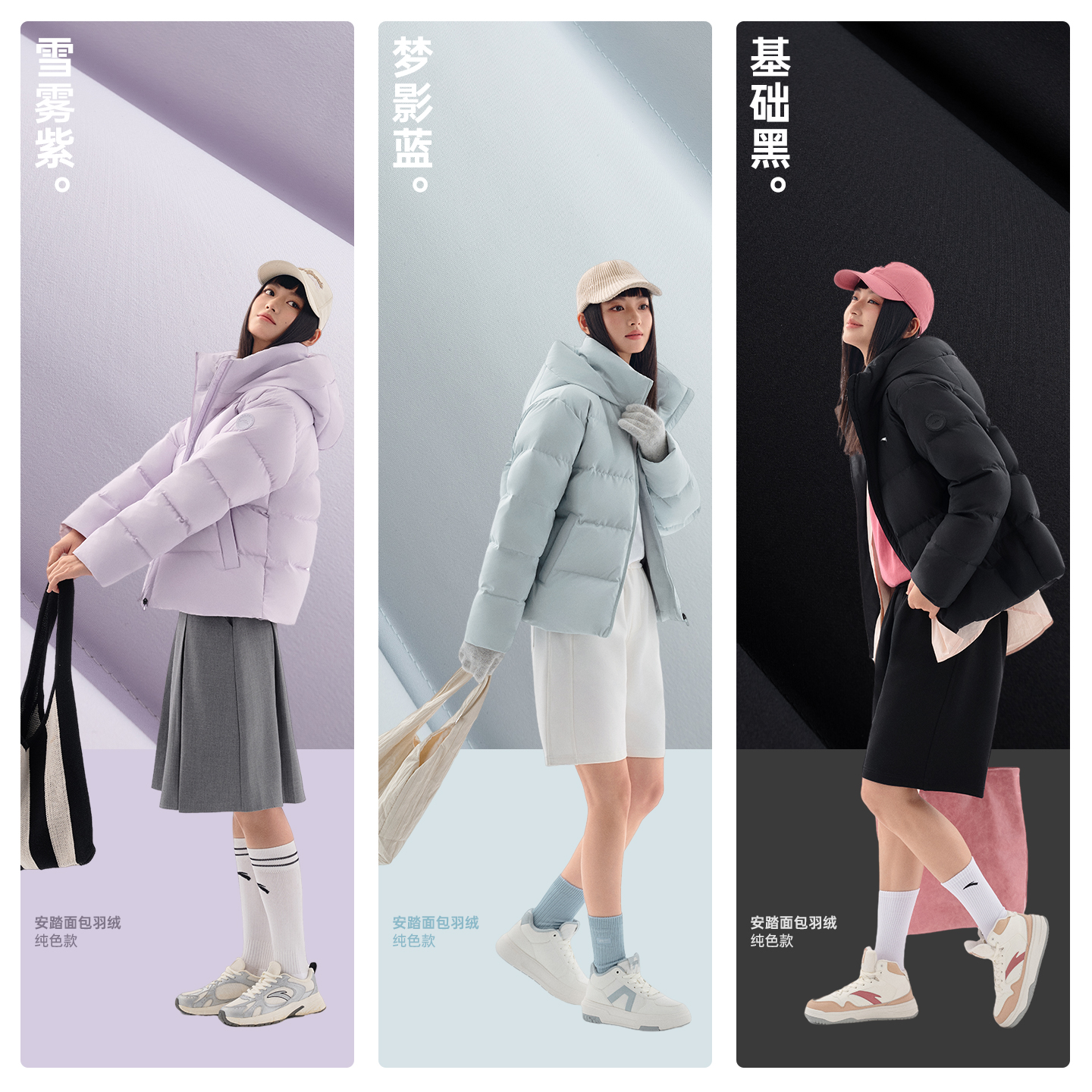 安踏面包羽绒丨防泼水高蓬松羽绒服女士2025冬季新款鸭绒保暖外套