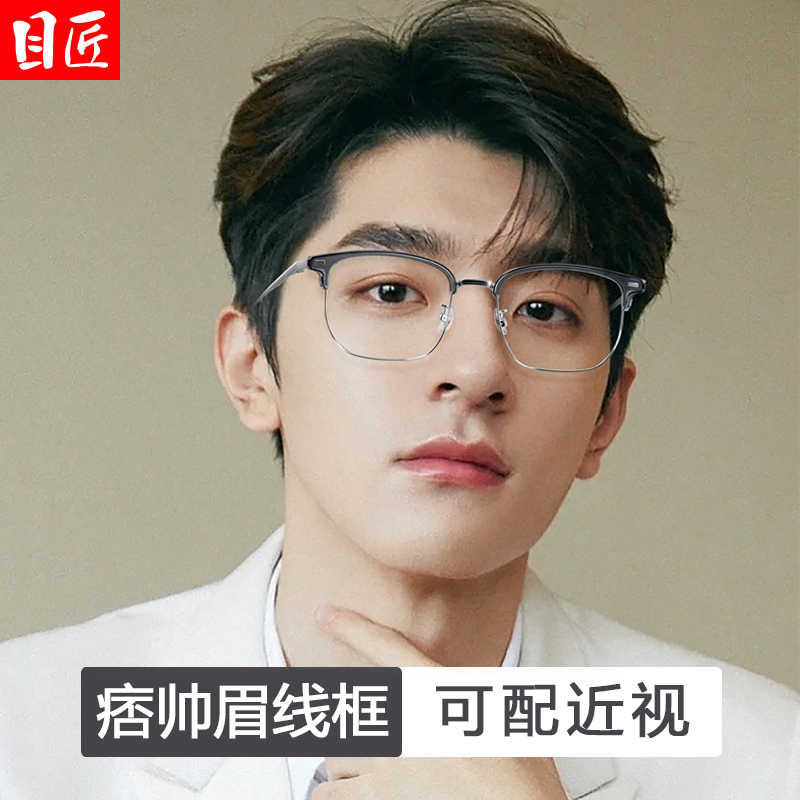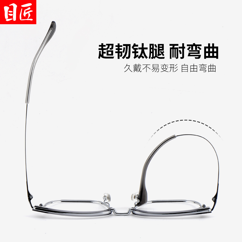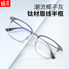 超轻纯钛透明椰子灰色半框近视眼镜框男款可配度数男式防蓝光镜女