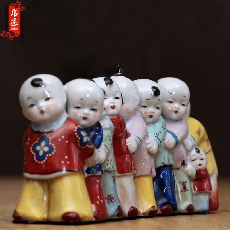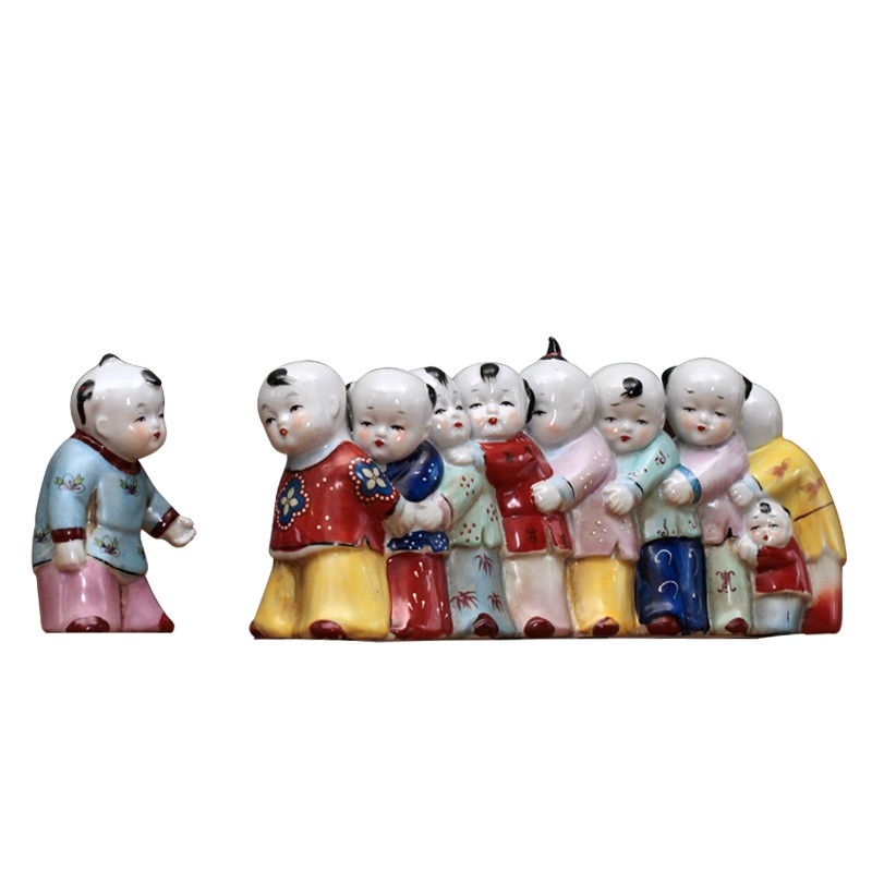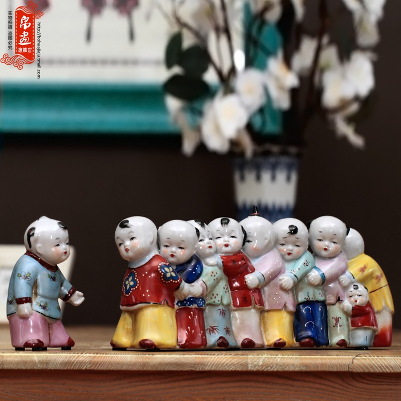 复古做旧中国风陶瓷娃娃摆件创意老鹰抓小鸡客厅桌面装饰品