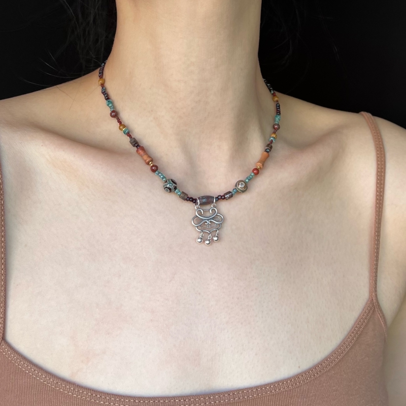 LYUMIN原创平安锁手工纯银锁骨链复古串珠设计感小众新中式项链