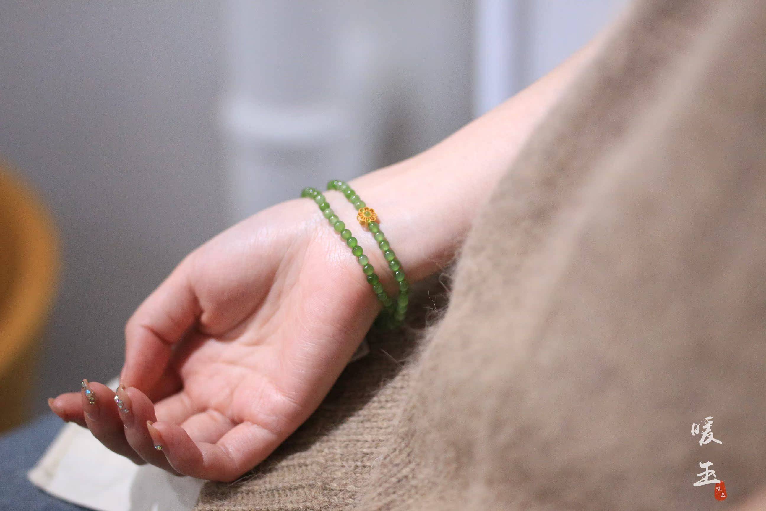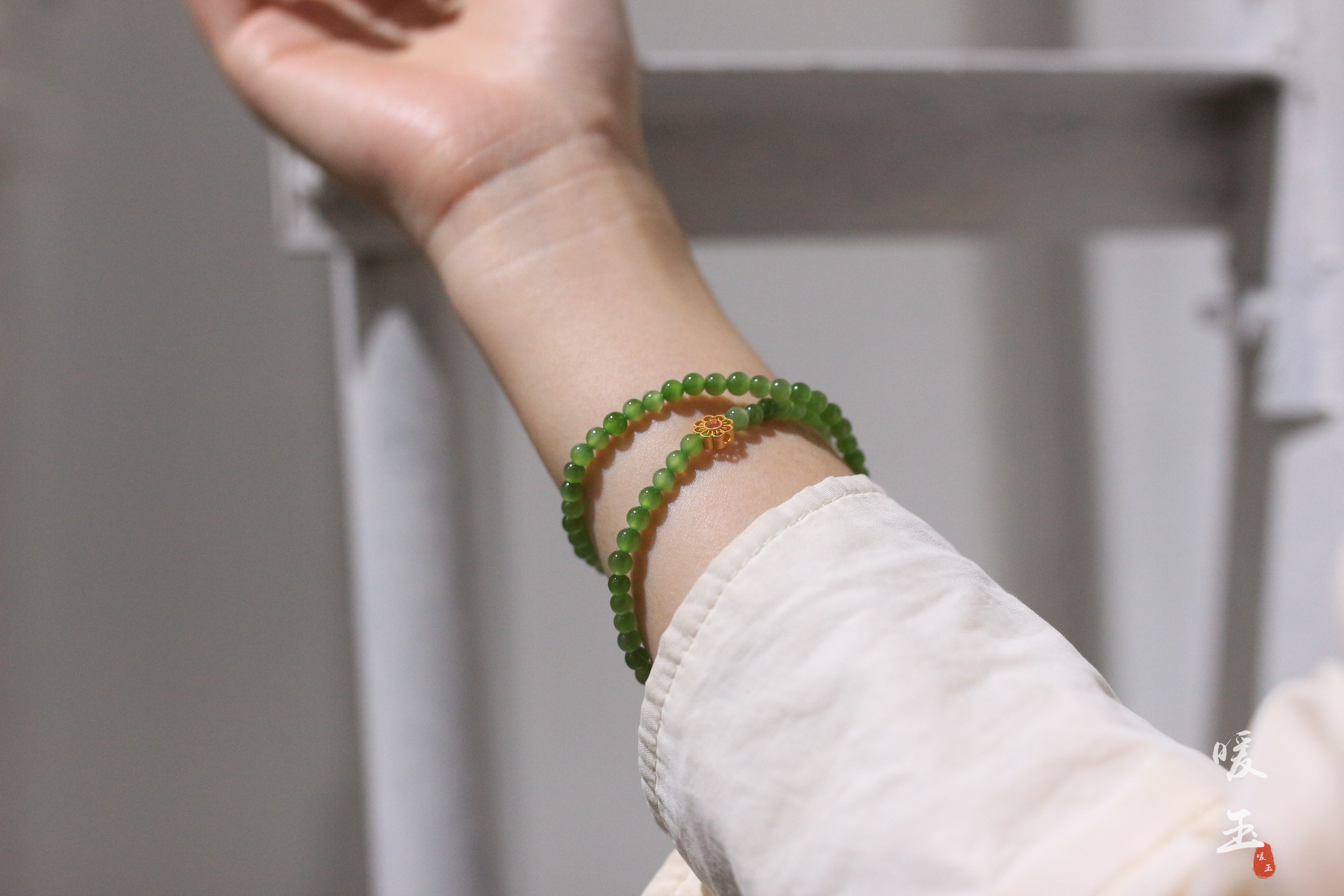 和田玉俄料碧玉老料阳绿菠菜绿圆珠手串手链猫眼小米珠diy女美搭