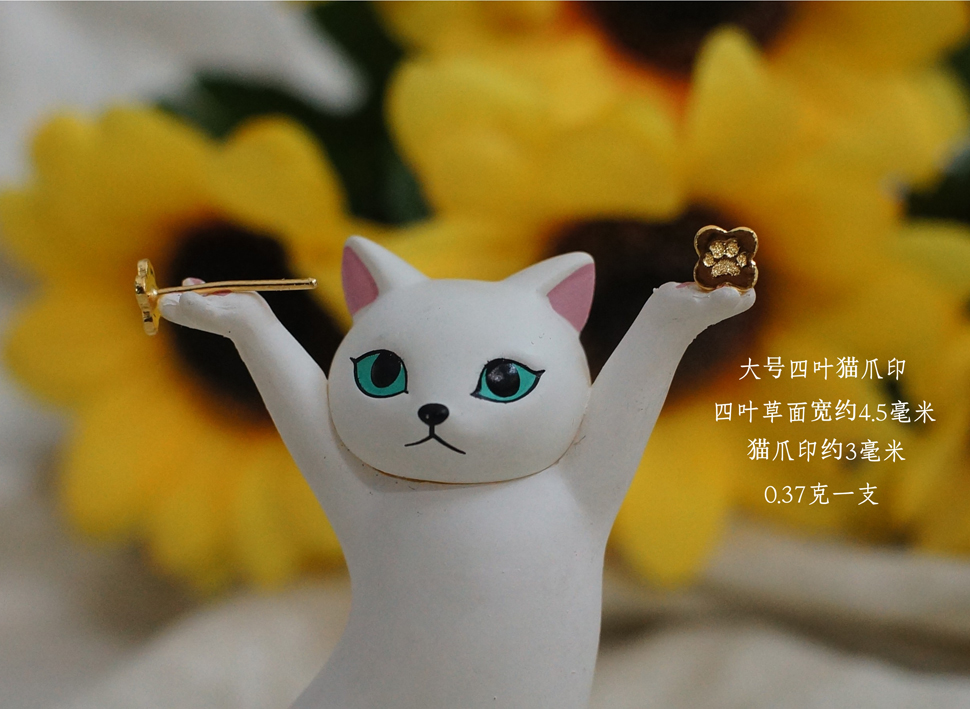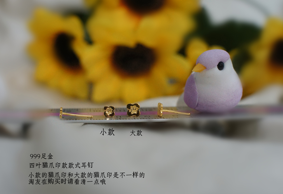 999足金猫爪印手工小耳钉 个性猫爪印出黄金耳饰迷你小巧养耳朵