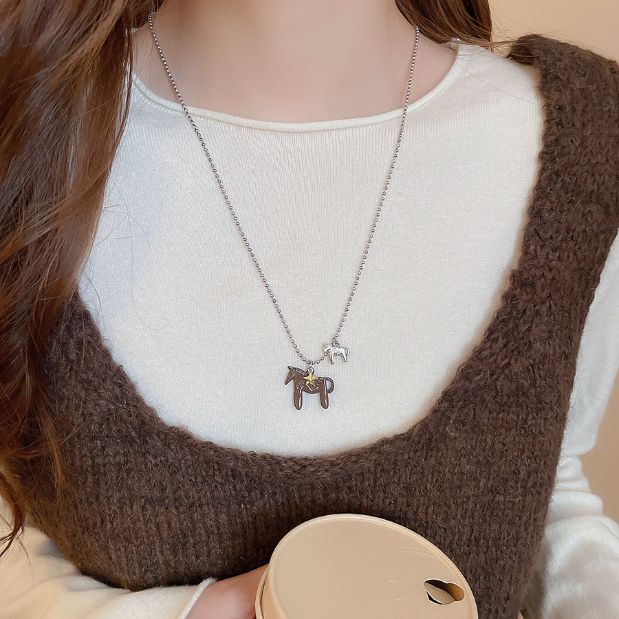 秋冬小马星星吊坠项链女款小众设计感时尚简约个性百搭毛衣链配饰