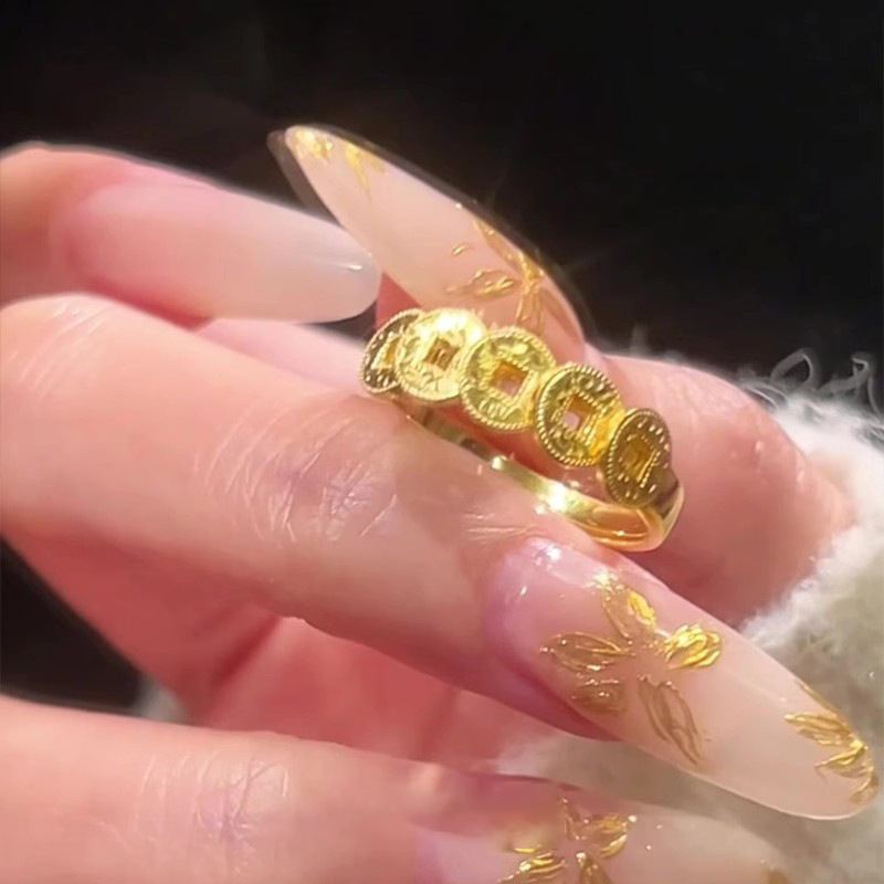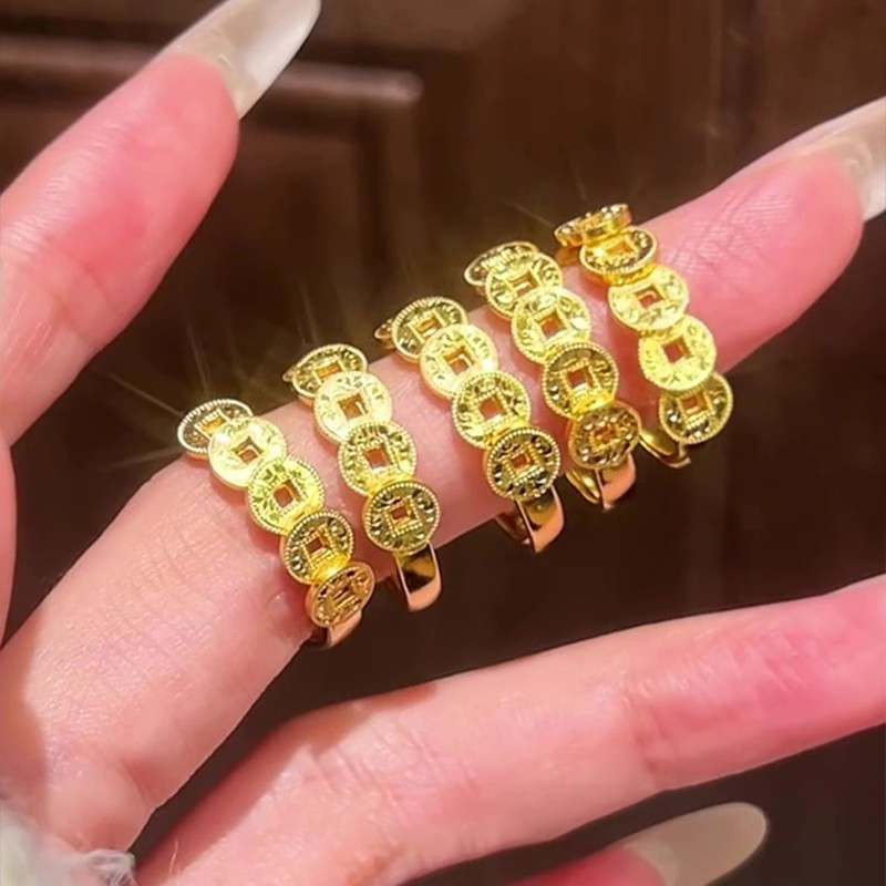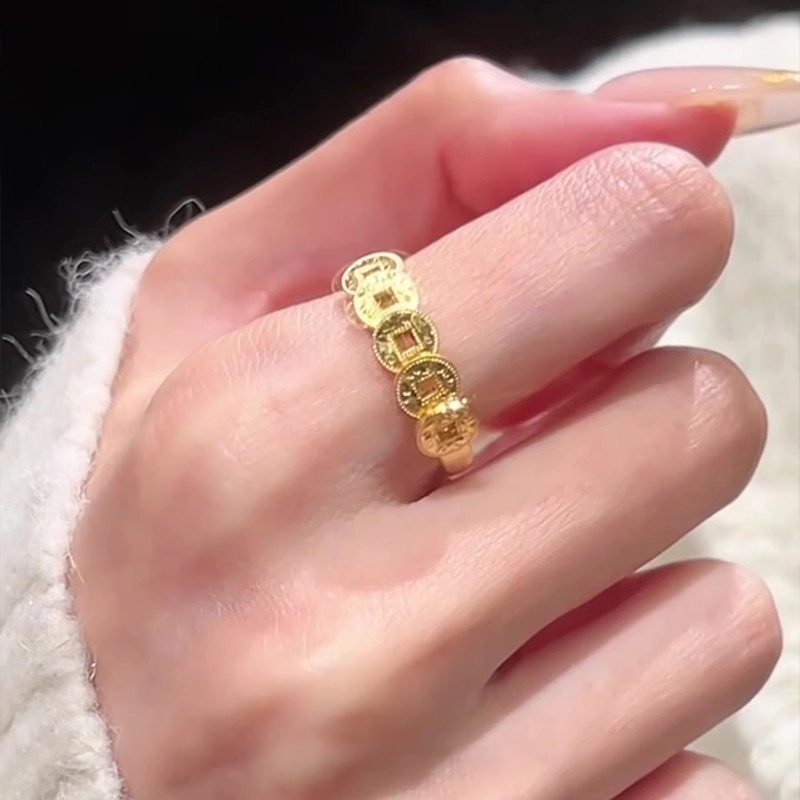 S925纯银碎碎冰铜钱戒指女轻奢高级感食指戒2025新款小众设计指环