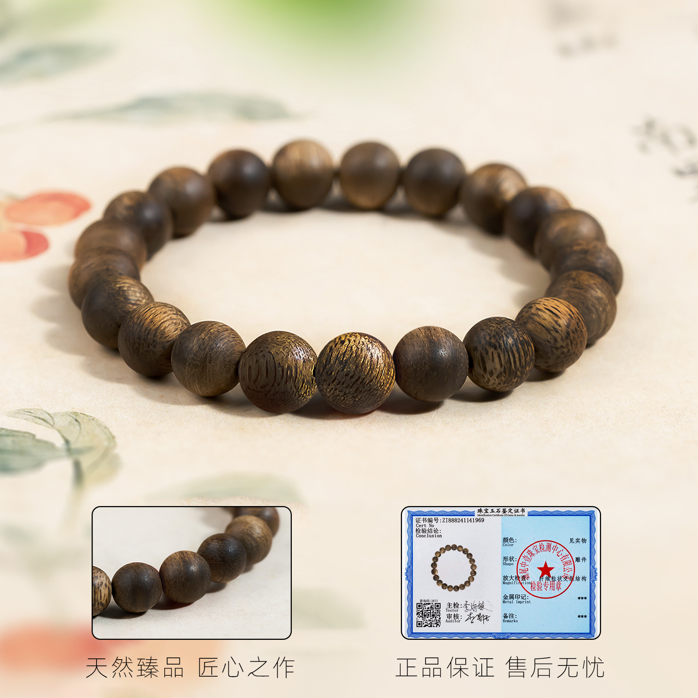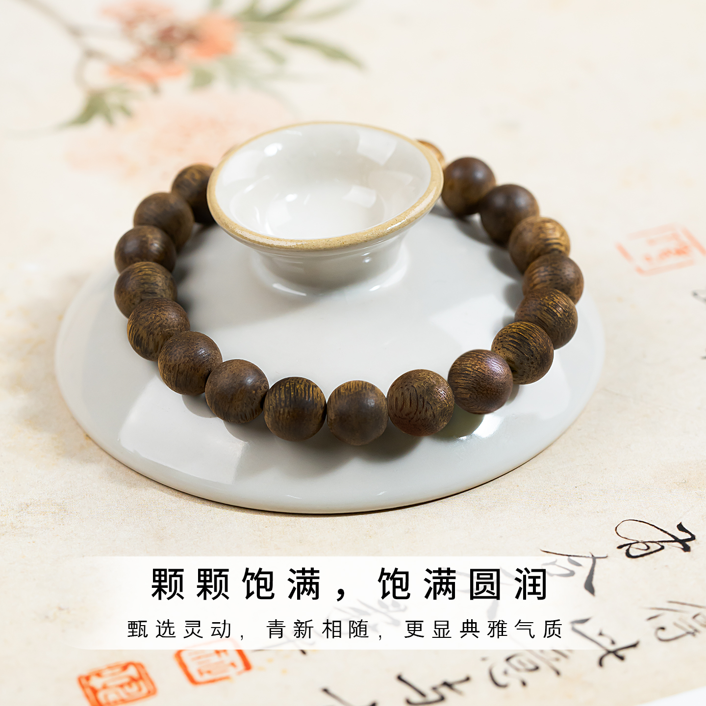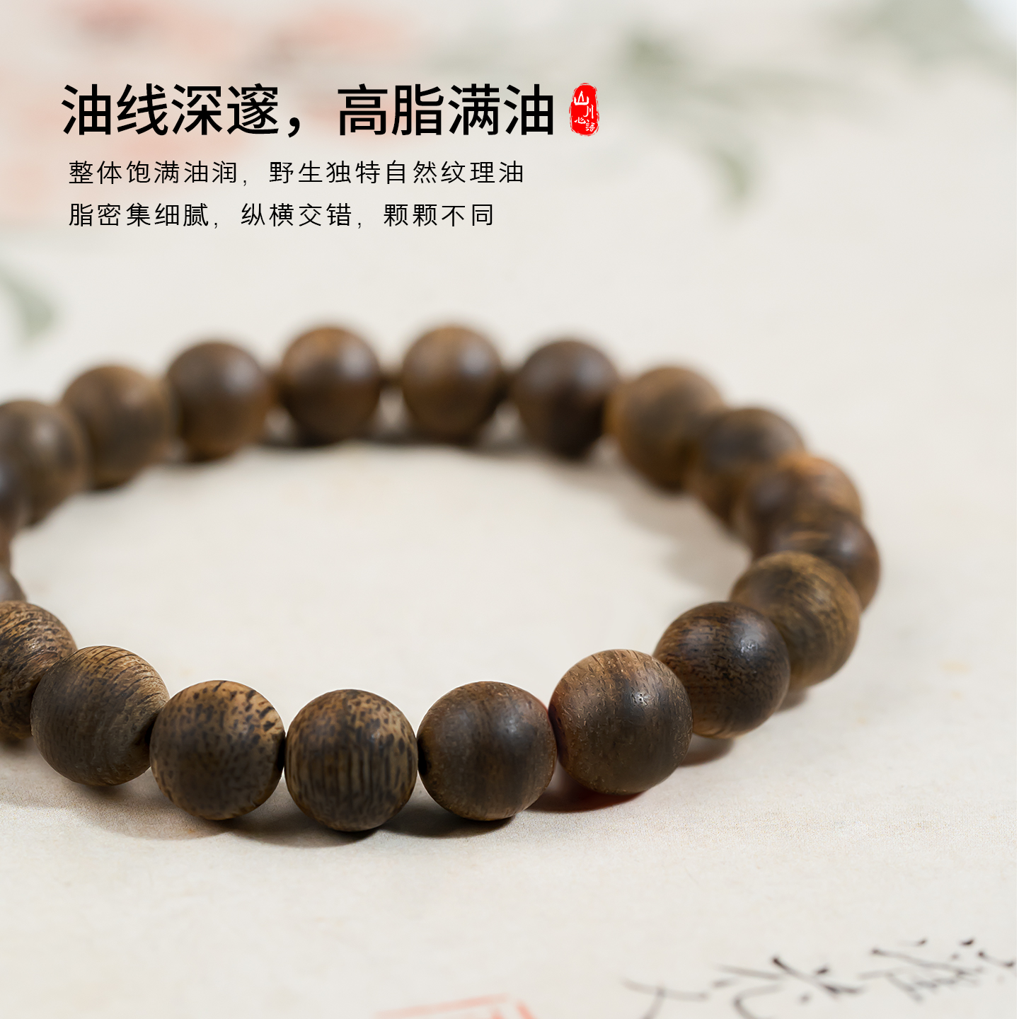 天然沉香老料檀香木质招财纳福本命年转运手串木质手链送长辈礼物