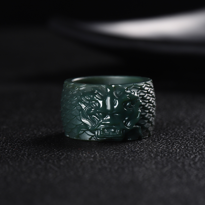 新疆和田玉龙头扳指青玉男士女士情侣塔青宽版玉戒指玉石指环玉器
