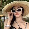 欧美个性小框太阳镜女拽姐新款椭圆框嘻哈南瓜红色墨镜潮女眼镜潮