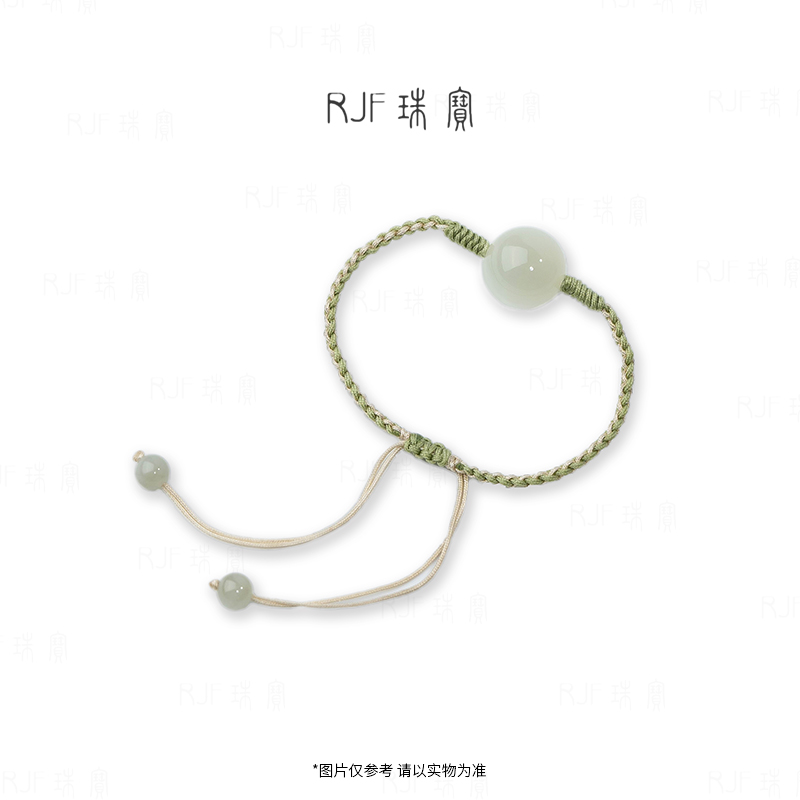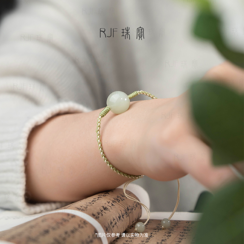 RJF【郝运莱-春意】天然和田玉手绳正圆单珠手工编织好运珠