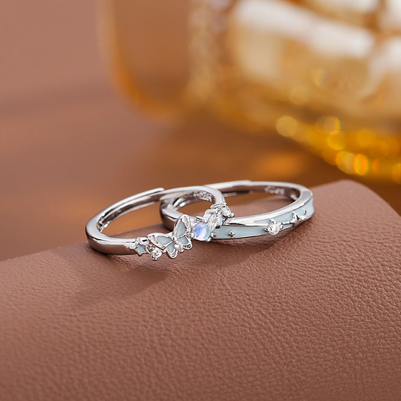 925纯银夜光蝴蝶情侣戒指女2025年新款爆款小众设计时尚开口设计