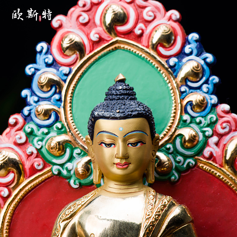 药师佛中式摆件 家用玄关铜像尼泊尔手工铜全鎏金雕花7寸带背光