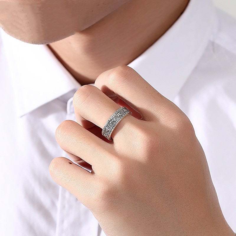 新品新款戒指复古情侣款六字真言心经男女开口情侣波浪指环