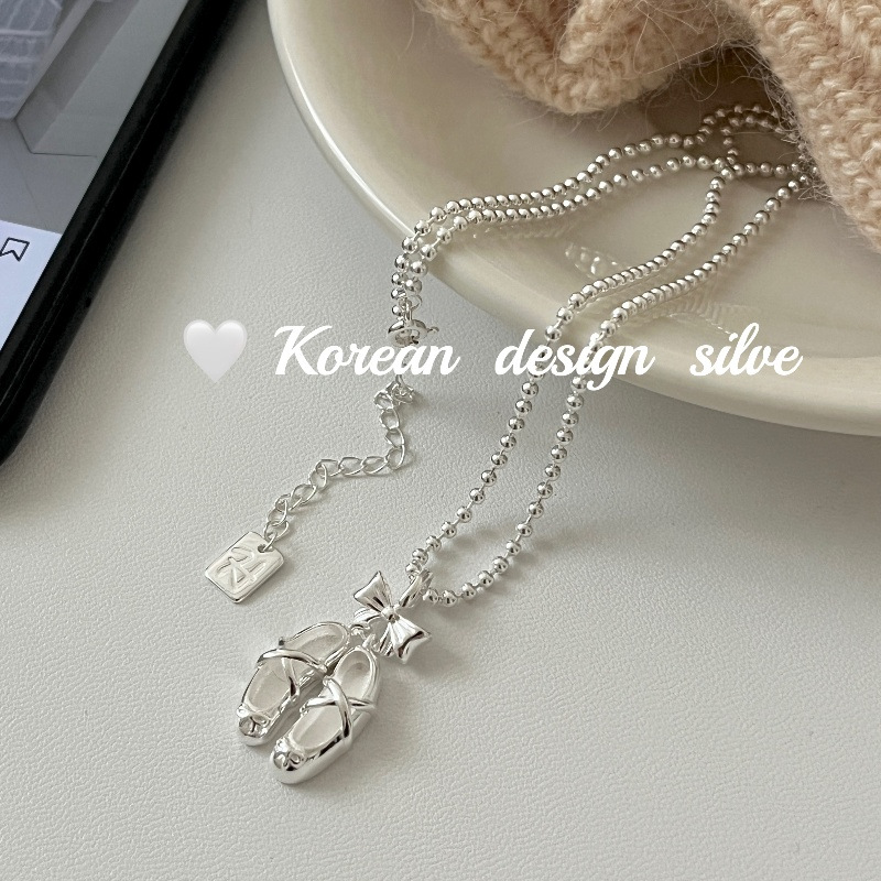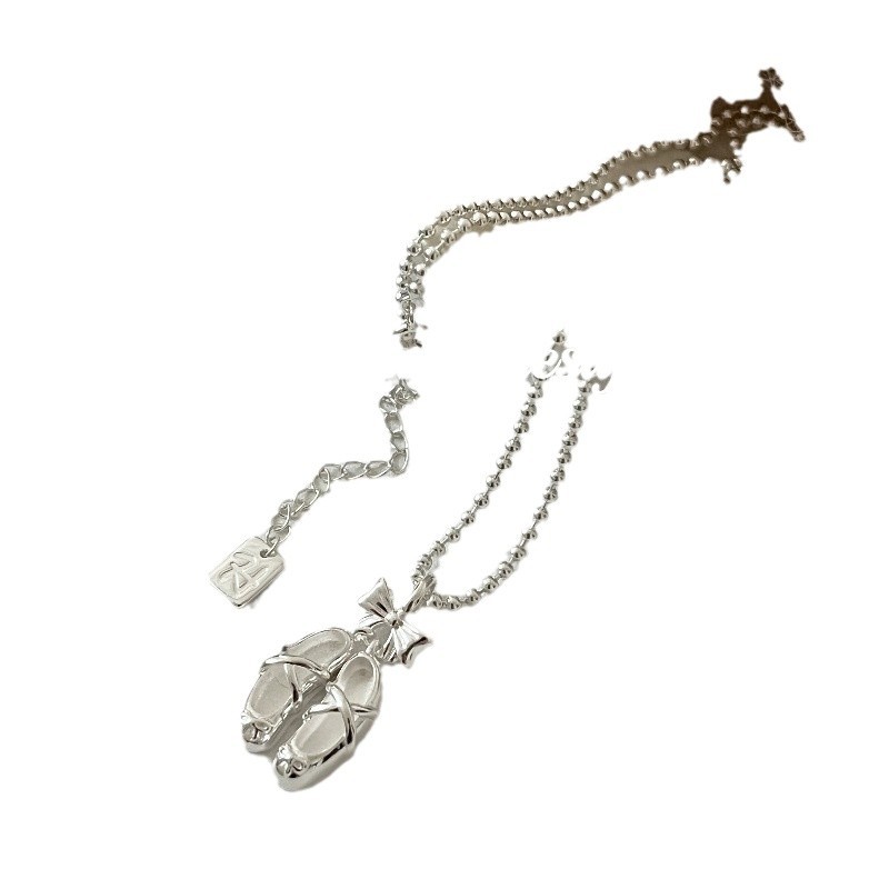 新款日系韩版2024设计饰品 S925纯银精美蝴蝶结芭蕾舞鞋项链ins风