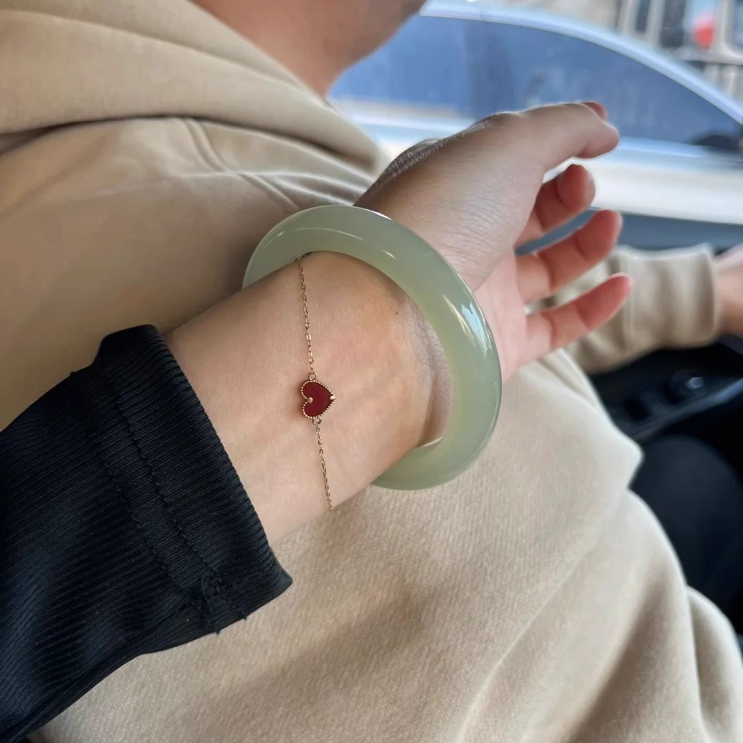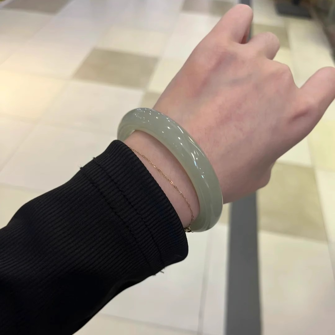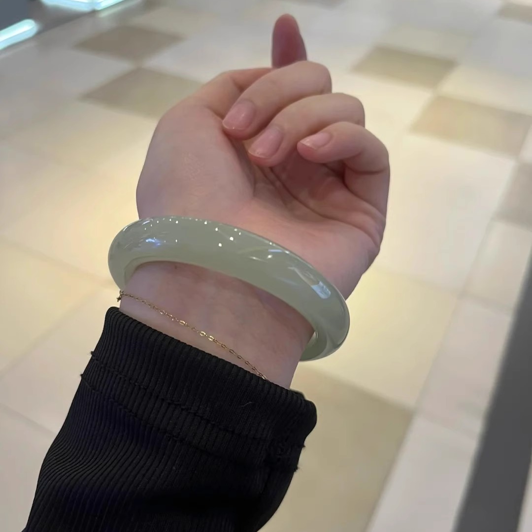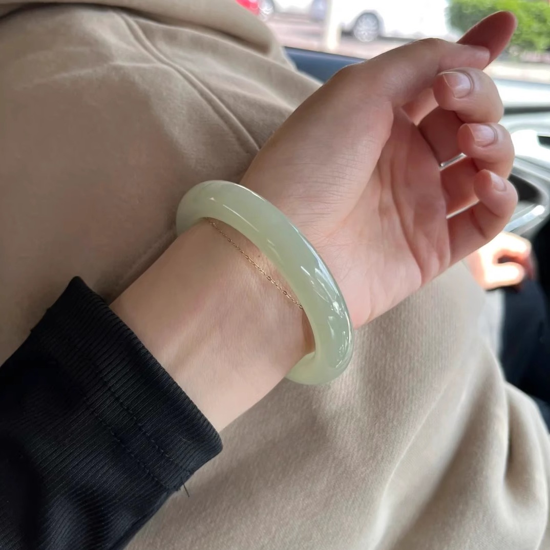 纯天然东陵玉晴水色正圈手镯油青浅绿和田玉青海料平替翡翠色女款