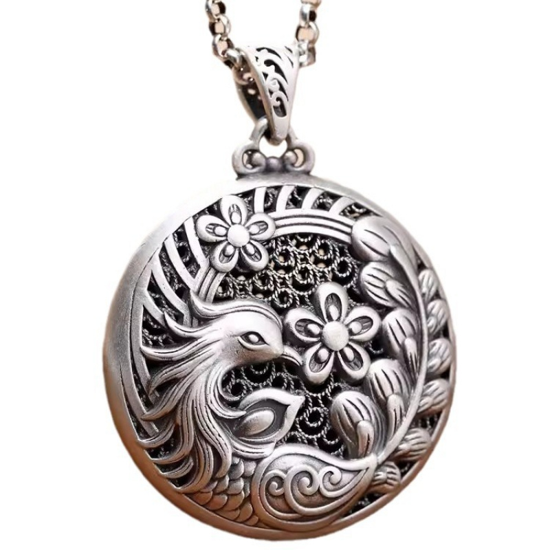 【好运】凤凰梅花S999纯银复古做旧毛衣链长款项链吊坠挂坠2023年