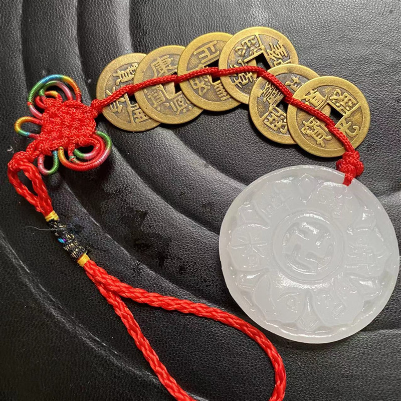 观音灵感玉明咒化解大门白玉五帝钱童子煞白玉六字明咒挂件真言