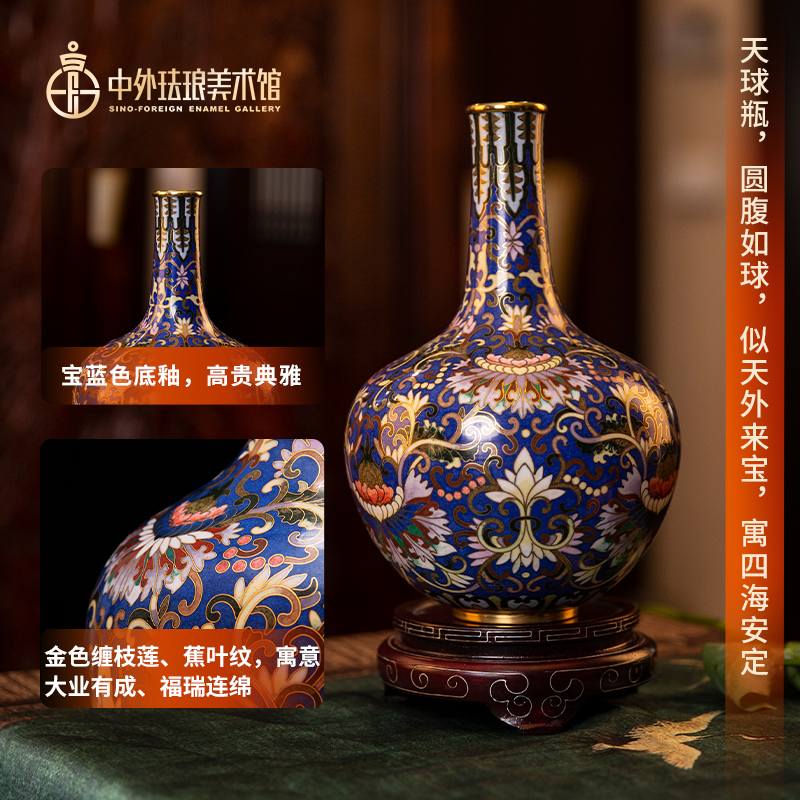 中外珐琅美术馆天球瓶景泰蓝花瓶摆件珐琅工艺品商务送礼品大促