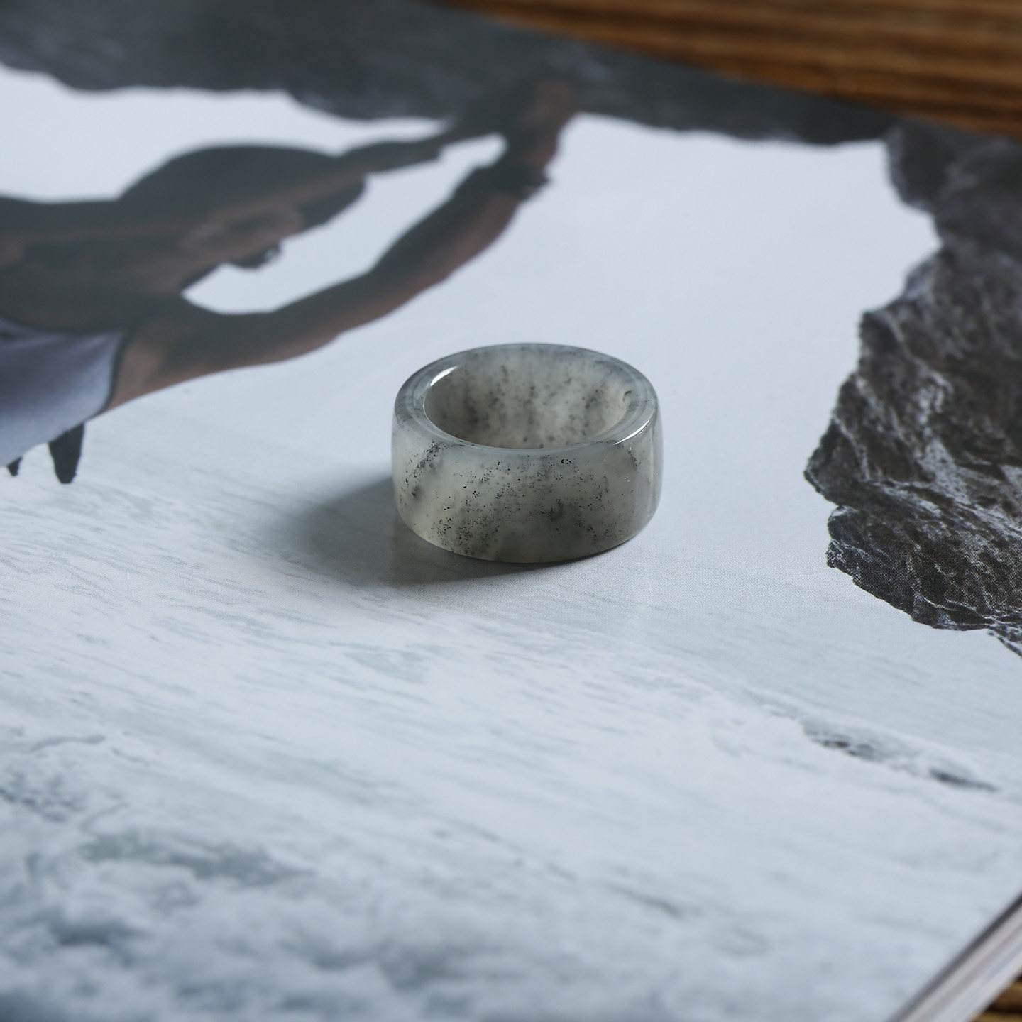 14号戒指 新疆和田玉青花籽料 籽玉宽条直切款方口指环 9110