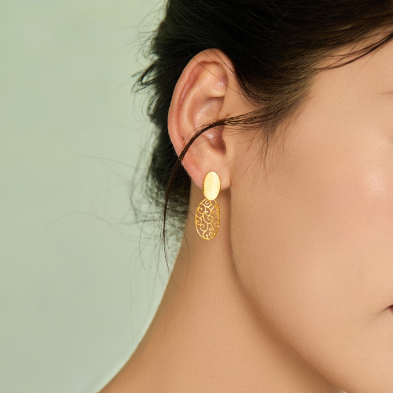 周生生镂空设计黄金耳环足金生生有囍黄金耳钉女78814E