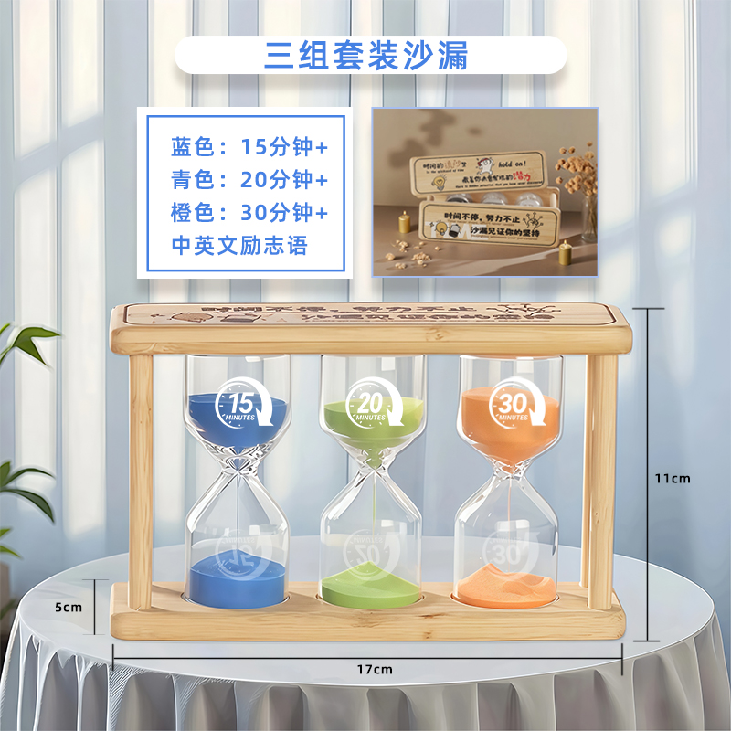 组合装沙漏计时器学生时间管理竹木防摔可定制刻字创意摆件礼物