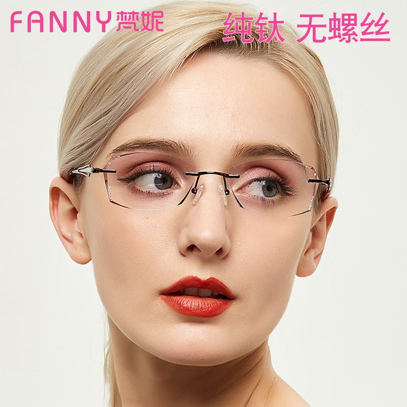 纯钛无框近视眼镜女钻石切边韩国超轻配成品丹阳大圆脸变色防蓝光