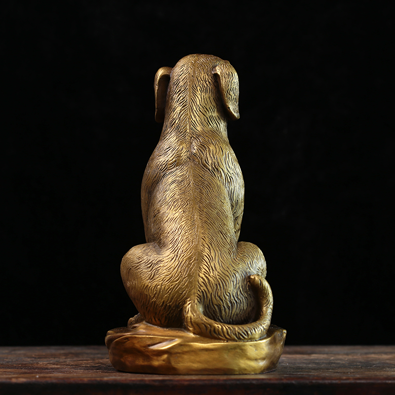 皇轩纯黄铜狗摆件生肖狗大号小风水中式铜工艺品金属家居客厅摆设