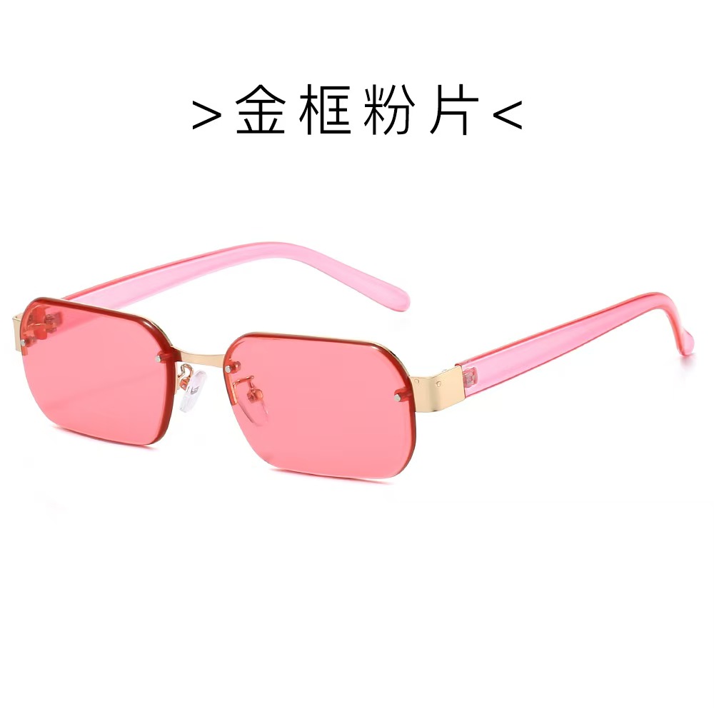 2025欧美新款多边形无框简约潮流时尚墨镜女街拍素颜红色太阳眼镜