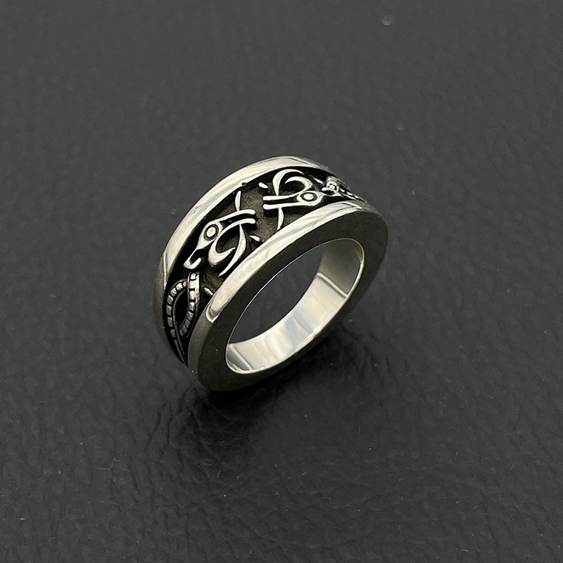s925纯银克罗伈复古斜面凯尔特龙戒指男欧美哥特风个性指环经典款