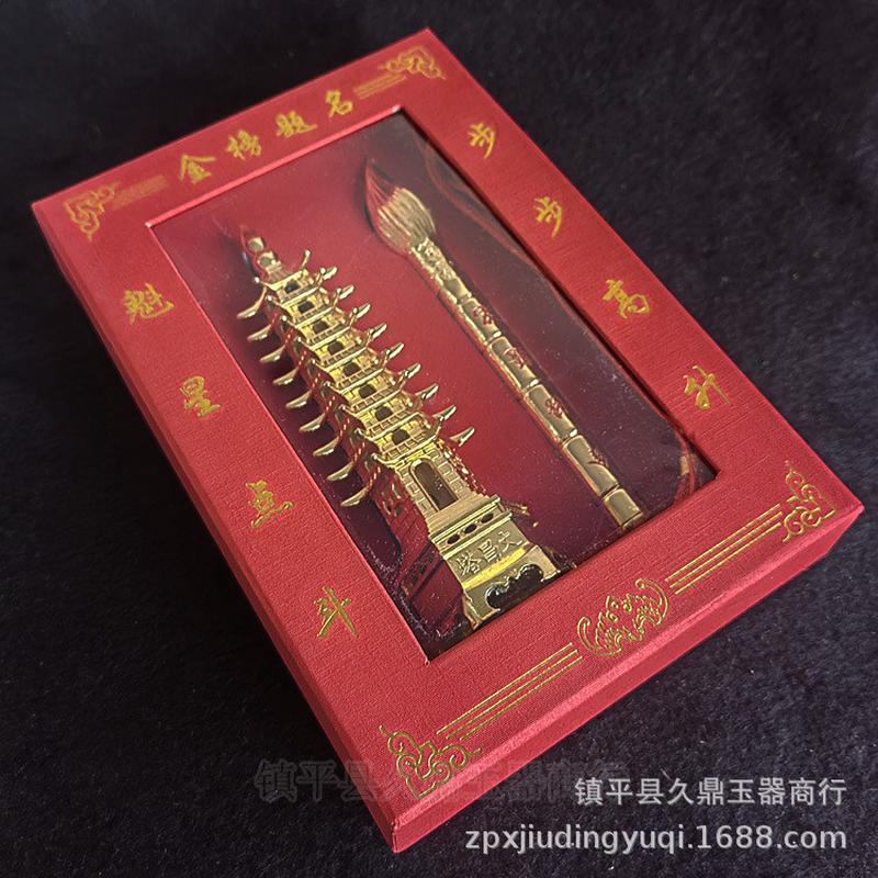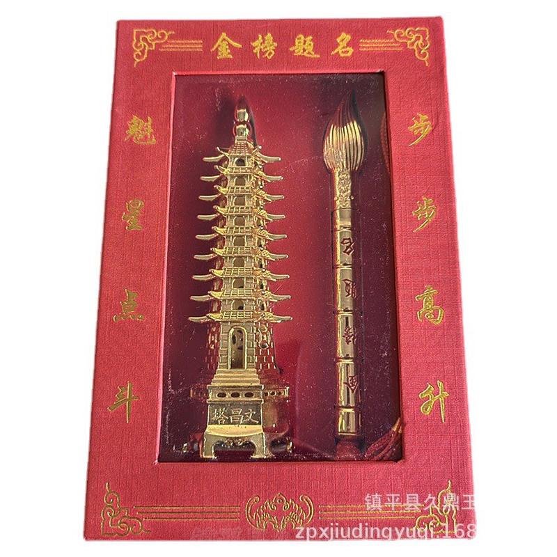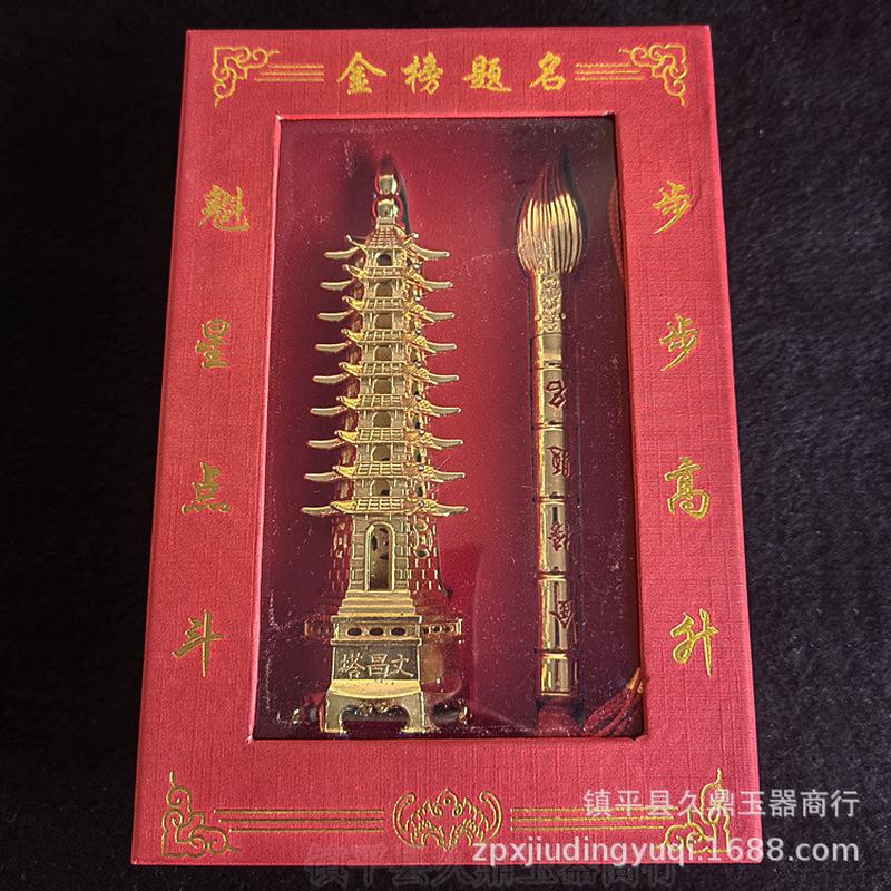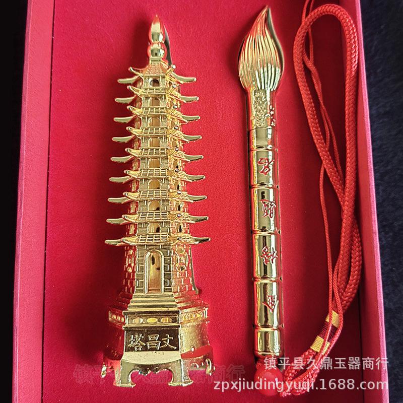 铜器批发 文昌塔毛笔套装带盒子批发礼品套装文昌塔套装铜器