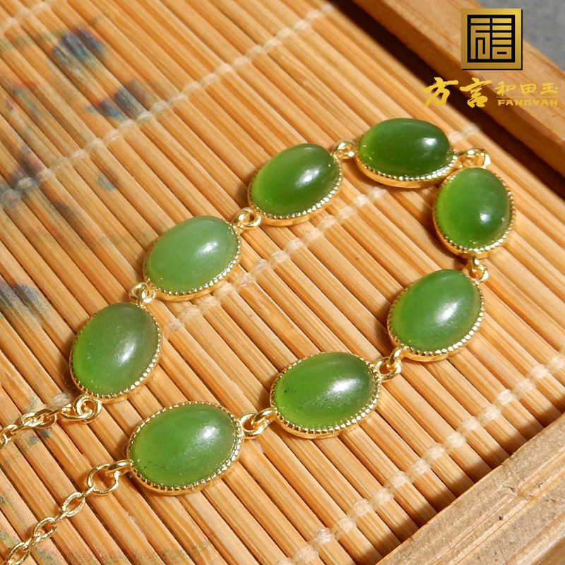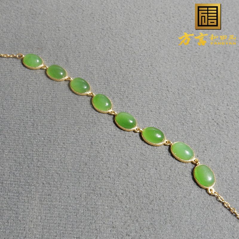 方言和田玉精品佩戴级俄罗斯果绿色碧玉银镶玉蛋面时尚女士手链R9