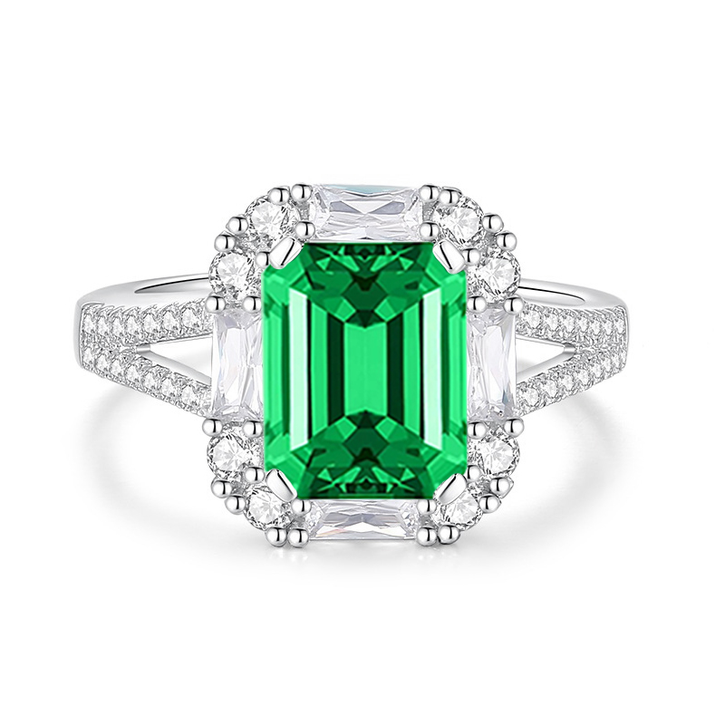 S925银镶嵌培育木佐祖母绿戒指鸽血红红宝石皇家蓝宝石设计定制