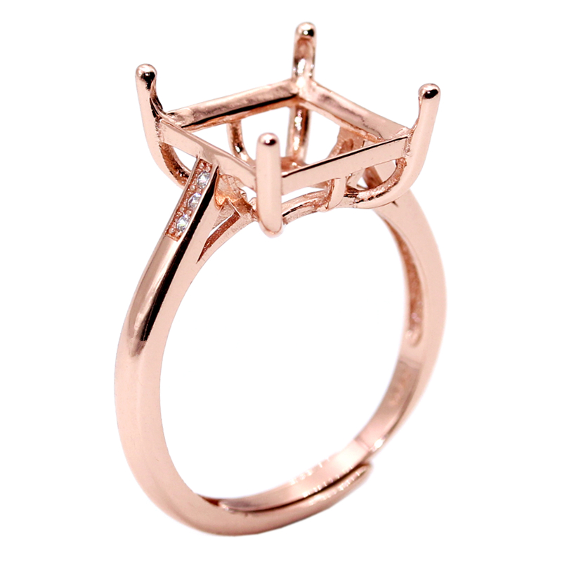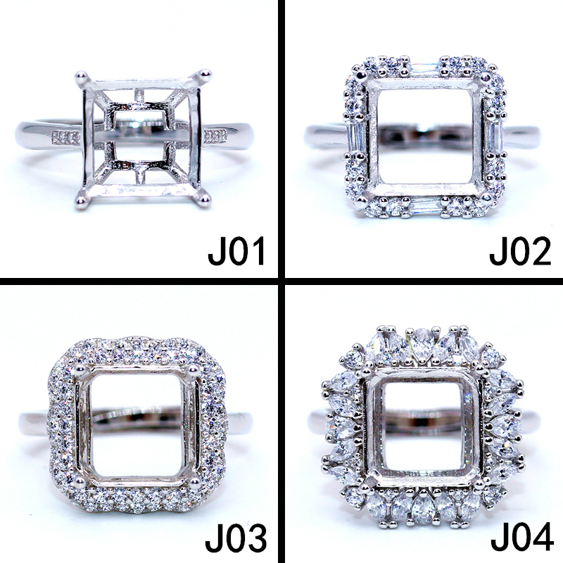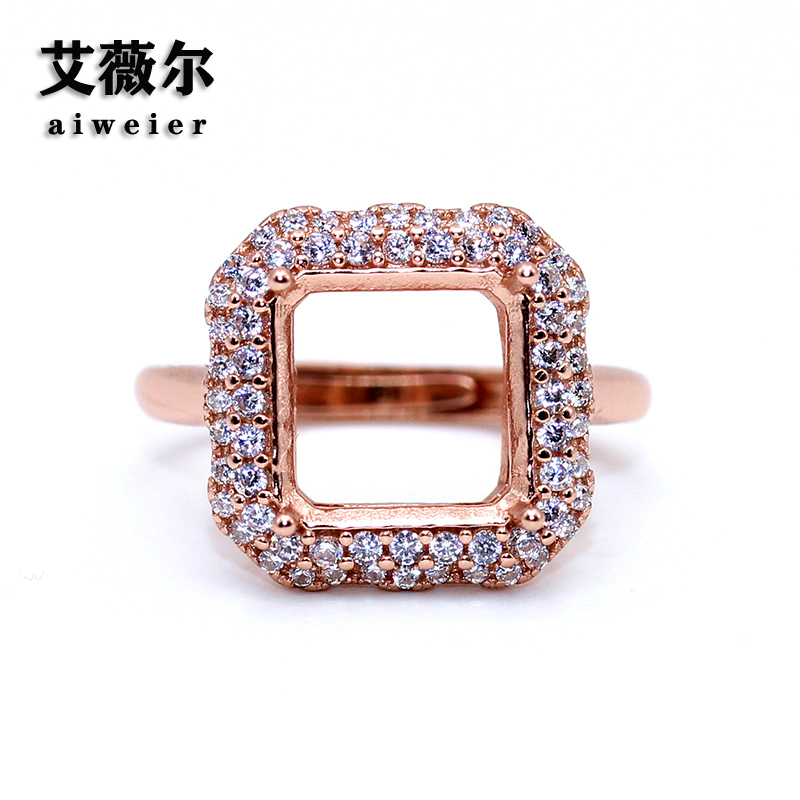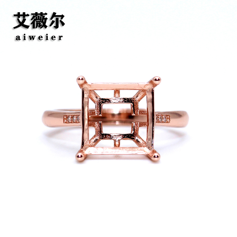 精工s925纯银戒指空托方形枕形原创设计宝石镶嵌18k金戒托8-9-10