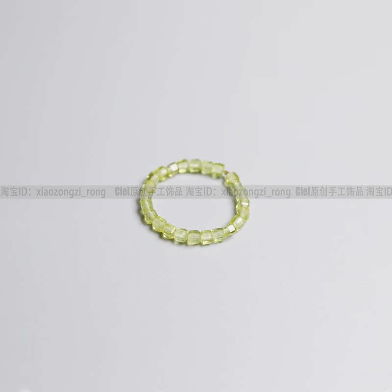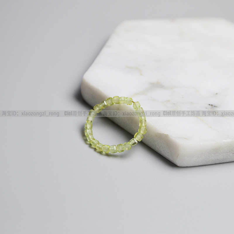 Ciel原创手工天然橄榄石戒指2.5mm方糖珠方块指环关节戒尾戒女绿