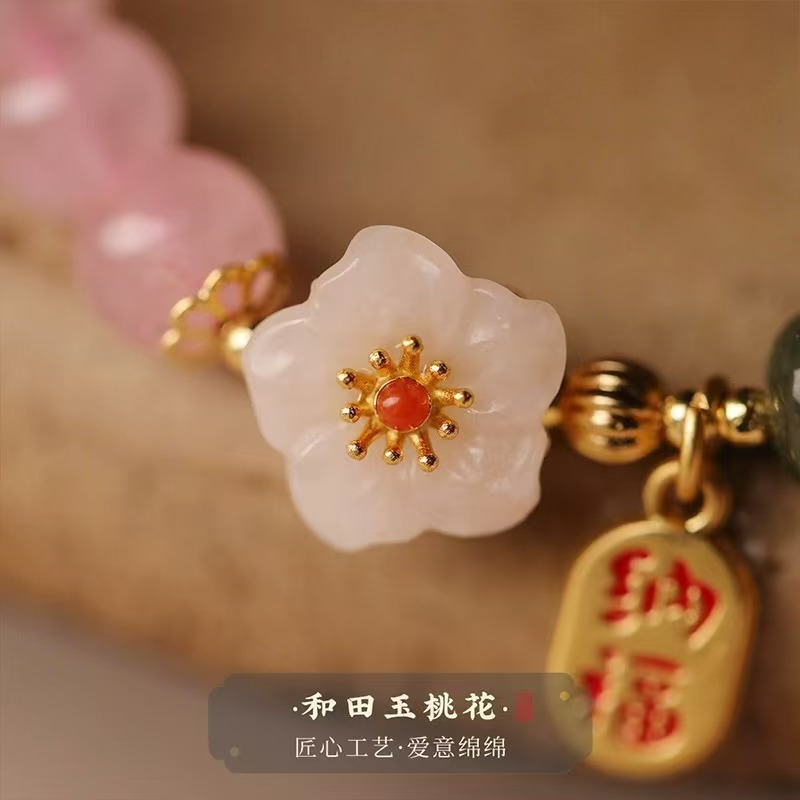 凤凰涅槃粉水晶手串女款粉色水晶招桃花手链和田玉手串珠桃花手链