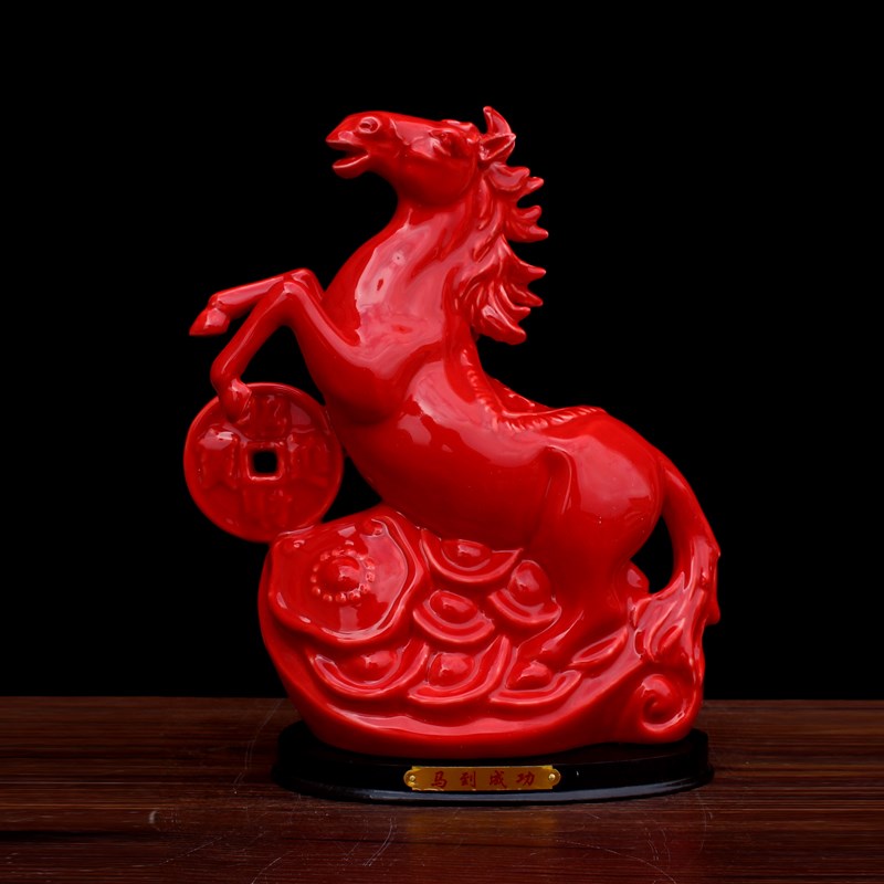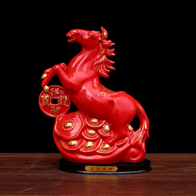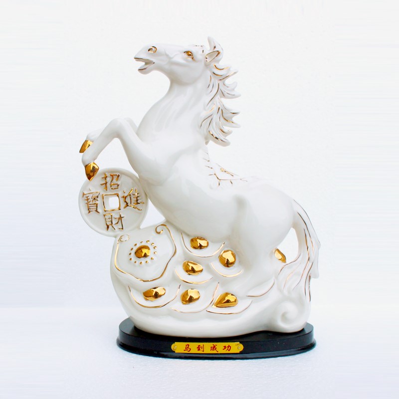 速发德化陶瓷招财马摆件工艺品白色马如意元宝办公室客厅书房桌面