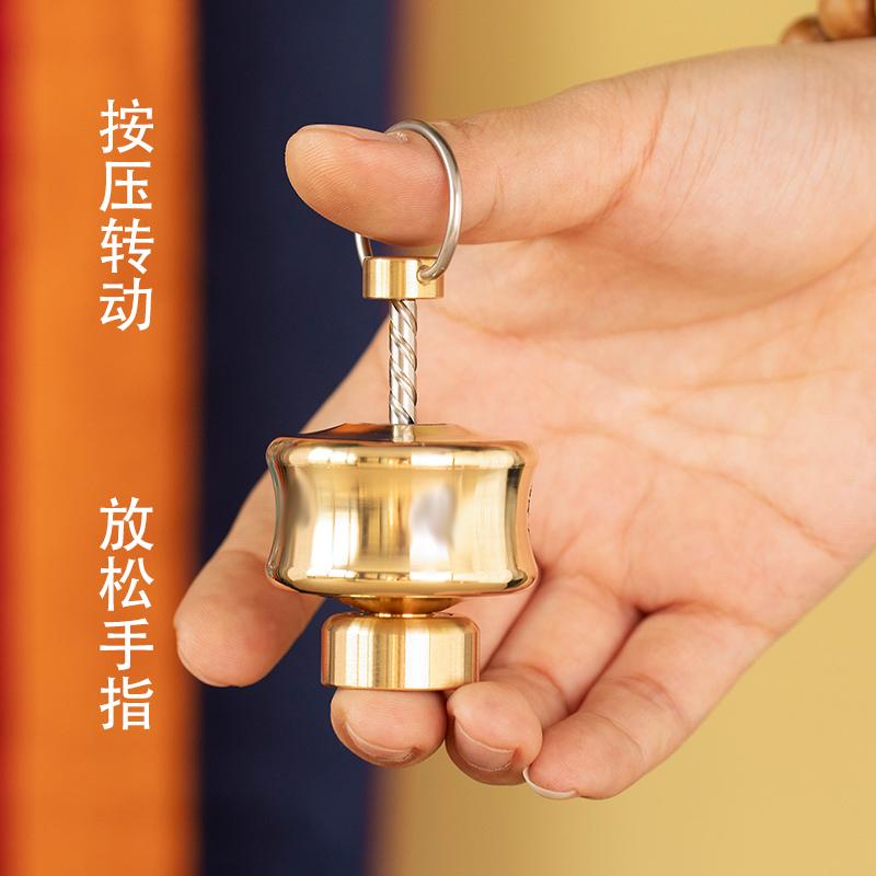 慈简喜乐按压转动手持手捻转轮向下按顺时针转黄铜语狮子缩微胶片