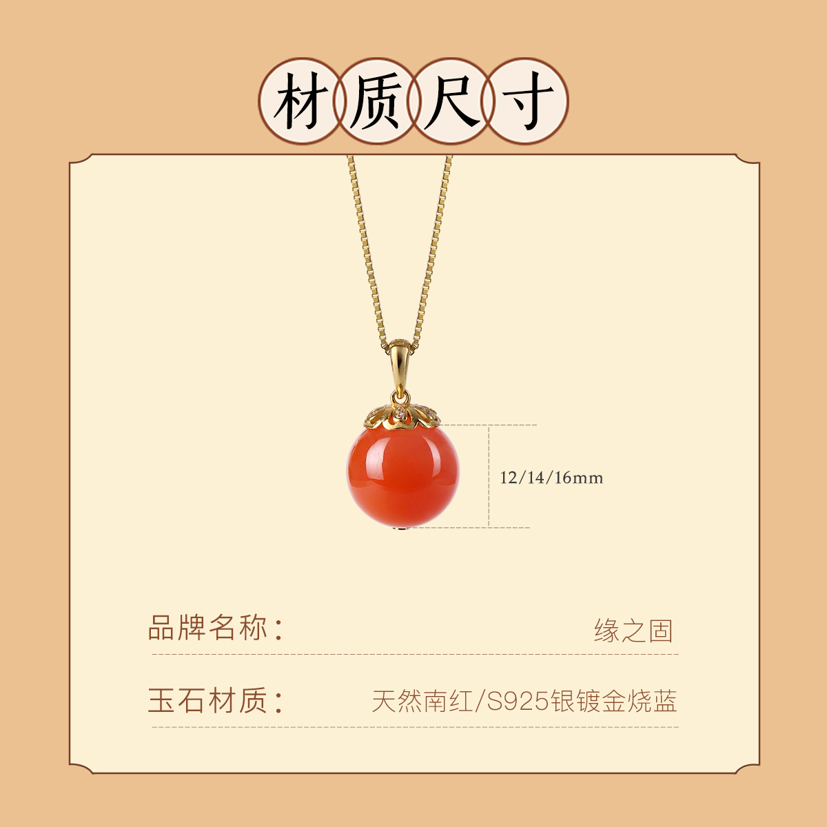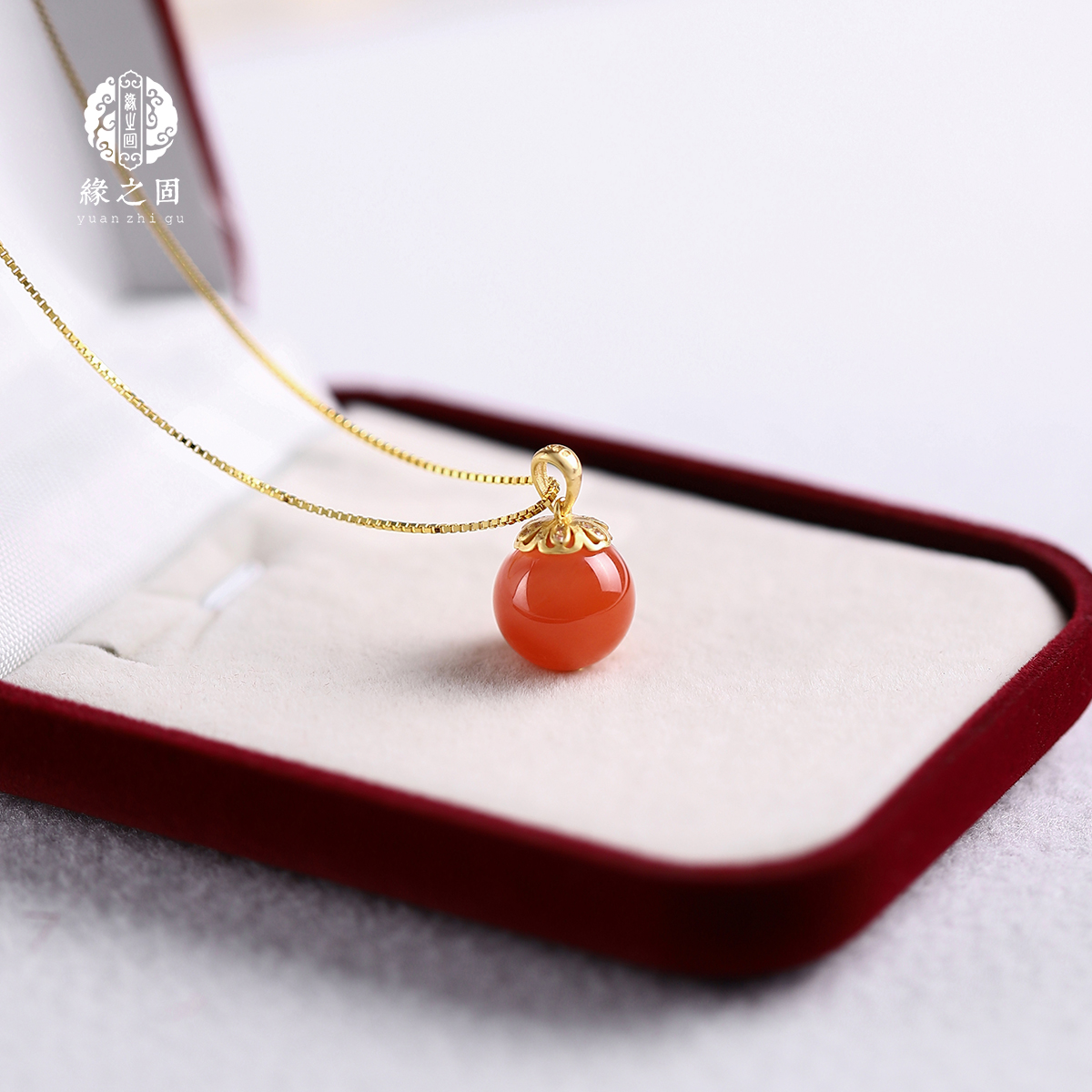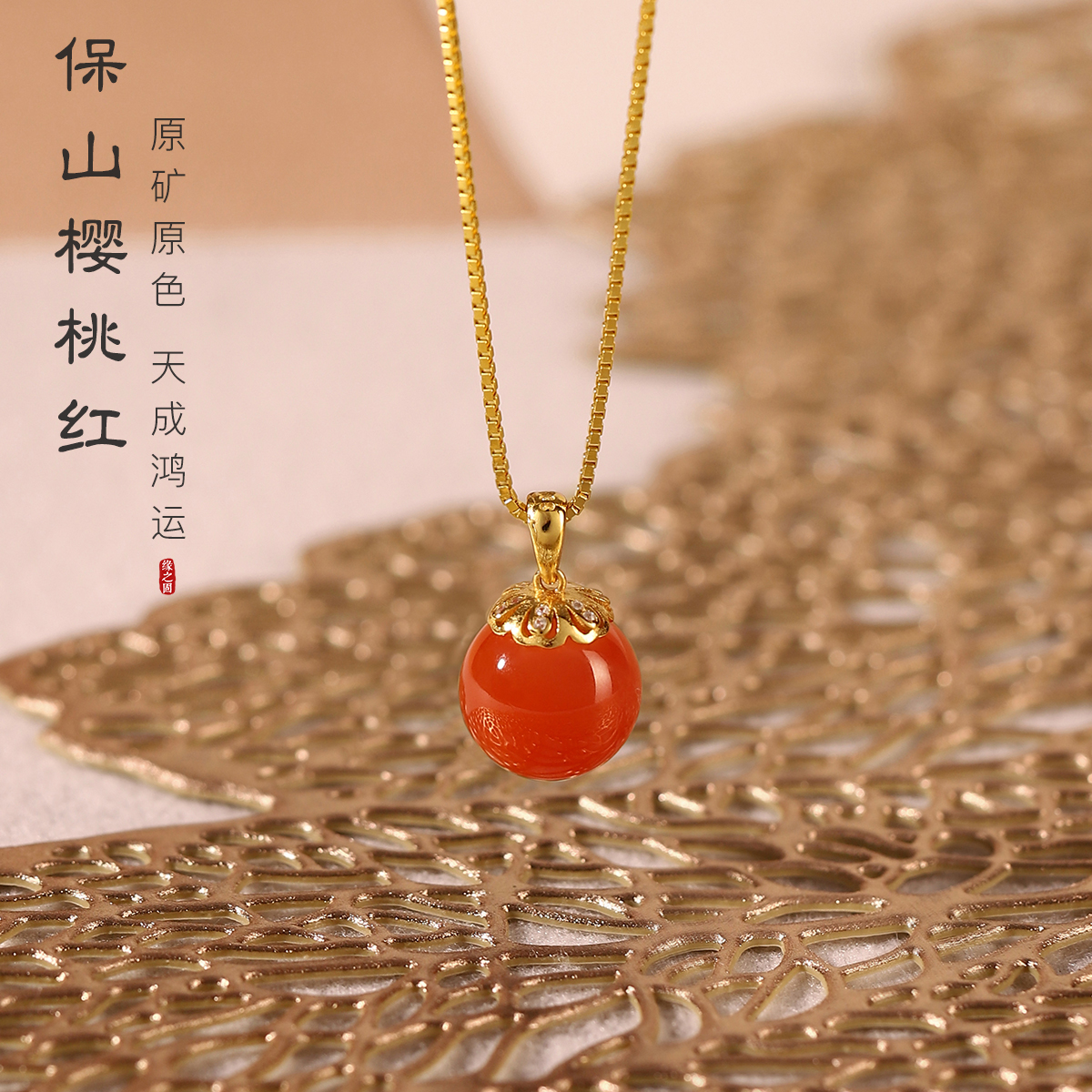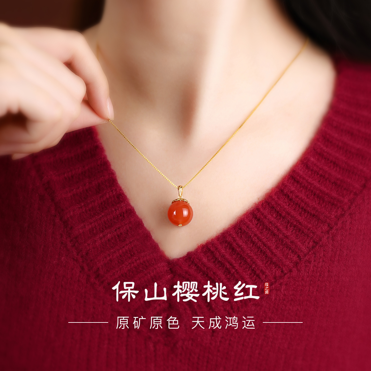 红色玛瑙纯银项链轻奢高级感南红吊坠新年玉石锁骨链气质女款正品