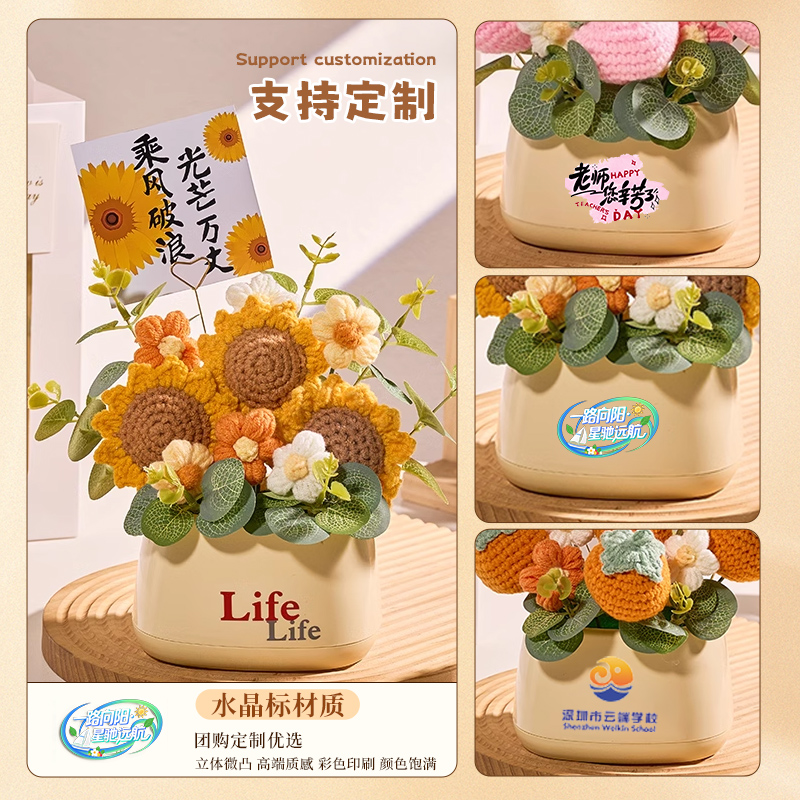 稳定神器工位办公室桌面小摆件向日葵手工针织花束生日礼物女摆放