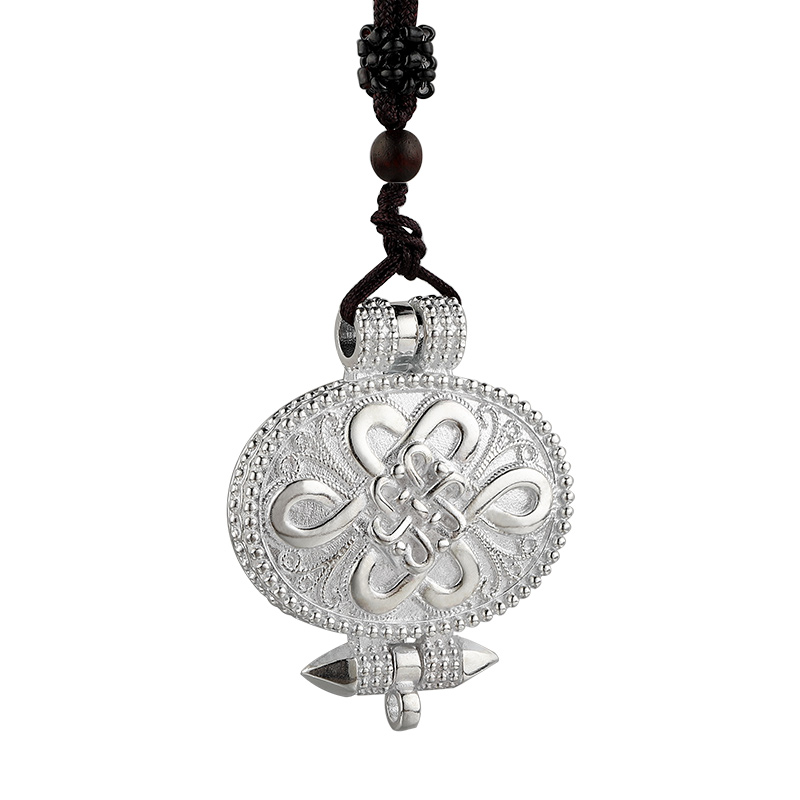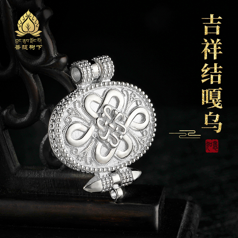 现货速发S银精品雕花吉祥结嘎乌盒吊坠民族特色饰品吉祥流行吊坠