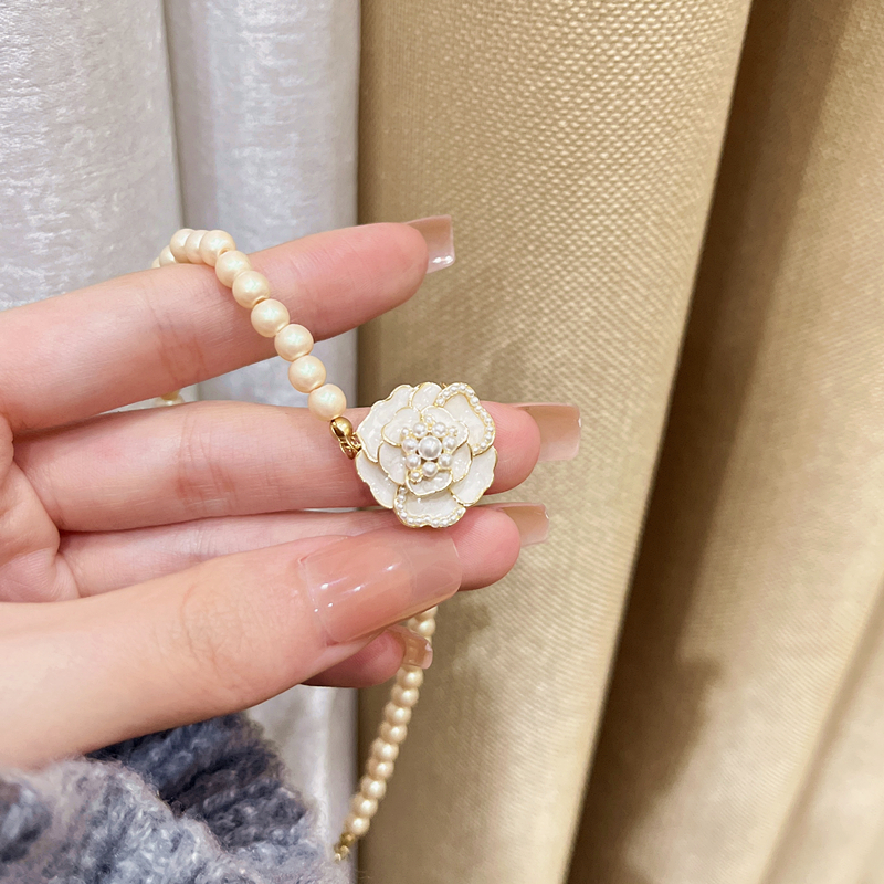 山茶花珍珠项链女2024年新款潮小众法式复古宫廷优雅设计感锁骨链